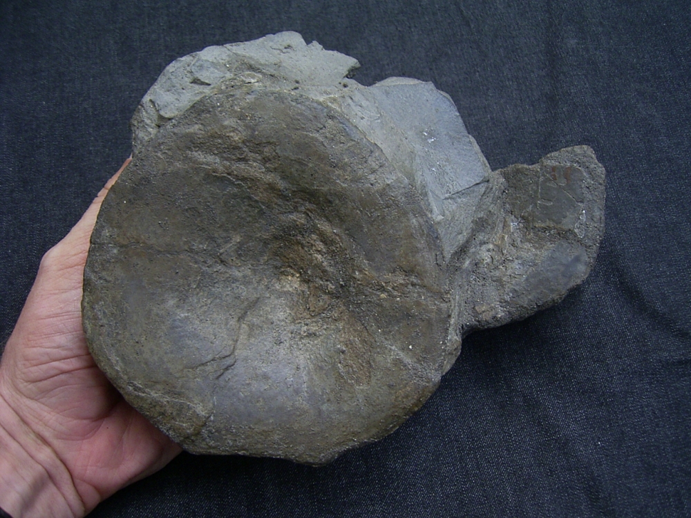 Das Fossil war gebrochen und wurde verklebt. Es ist sehr massiv und wiegt etwa 2,3 Kilogramm.