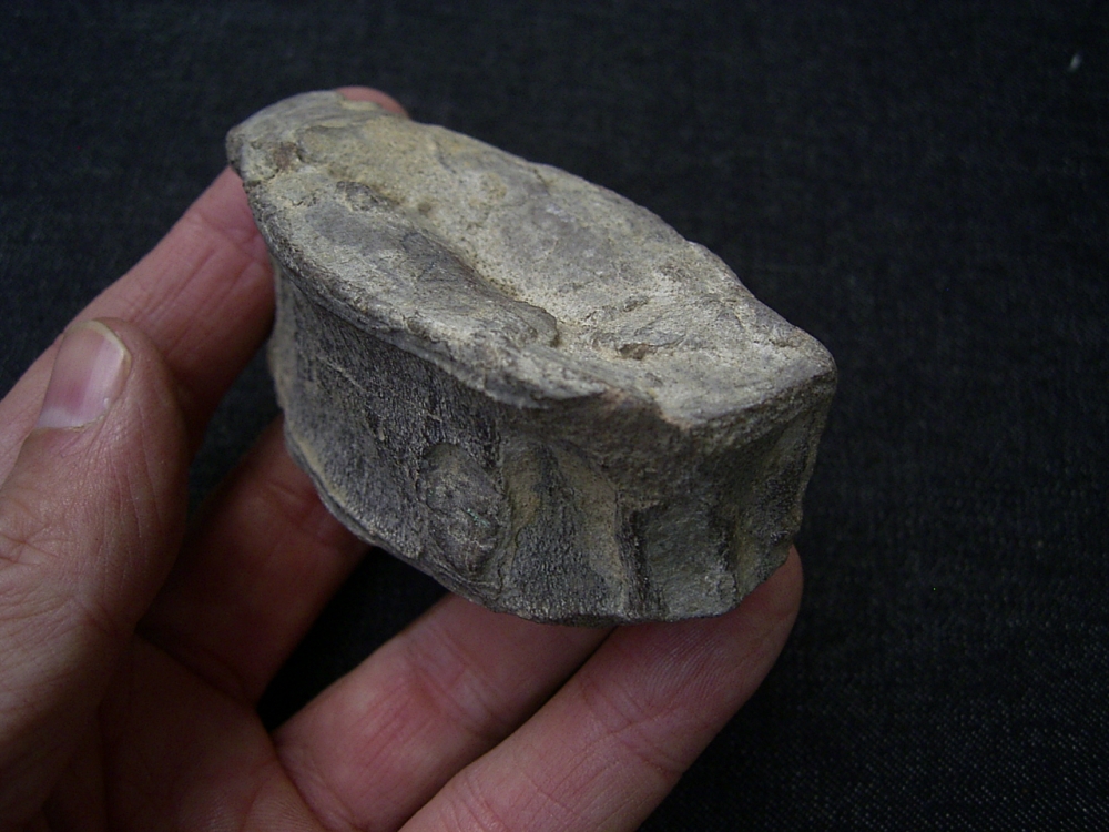 Dieser Wirbel von Ophtalmosaurus icenicus SEELEY, 1874 stammt aus dem oberen Jura (Oxfordium) von Peterborough, Northhamptonshire in Großbritannien.