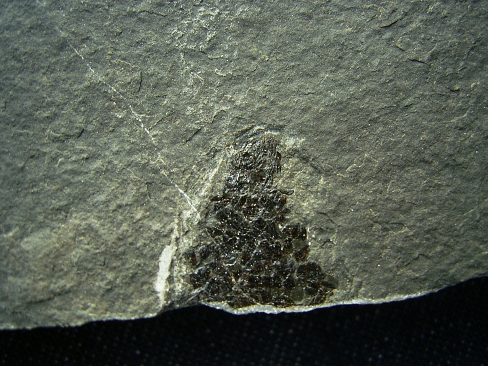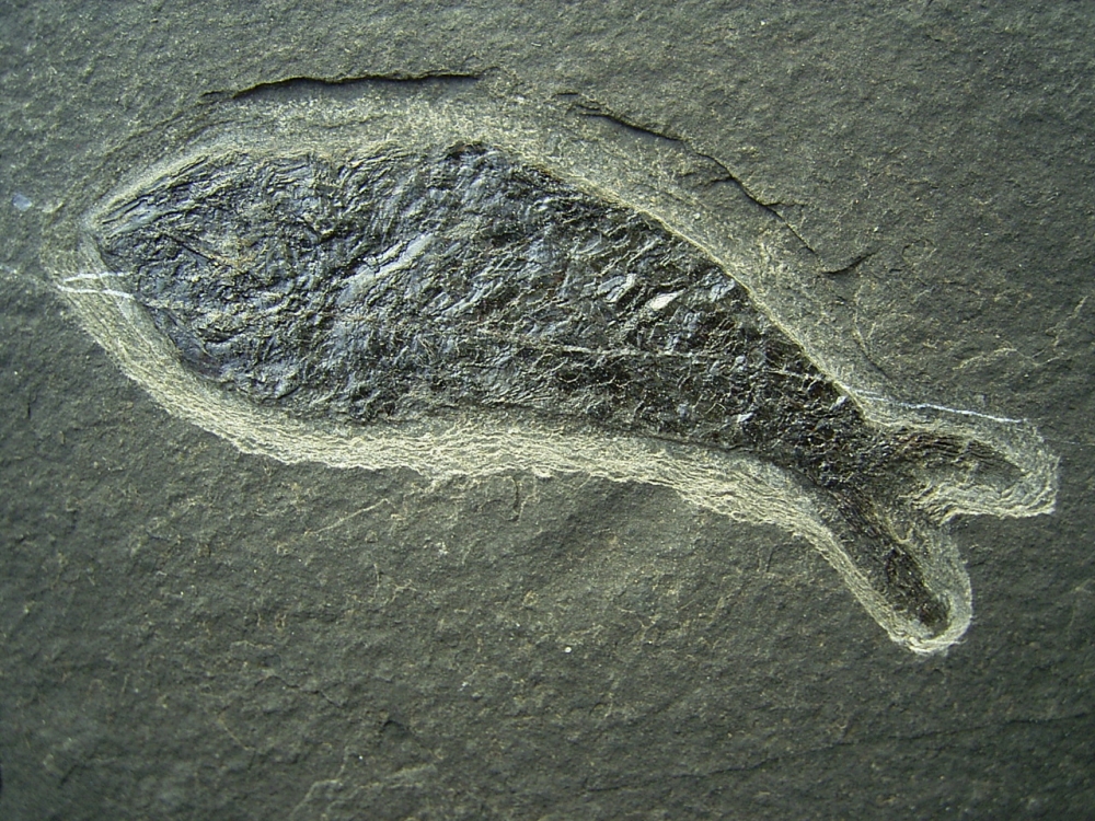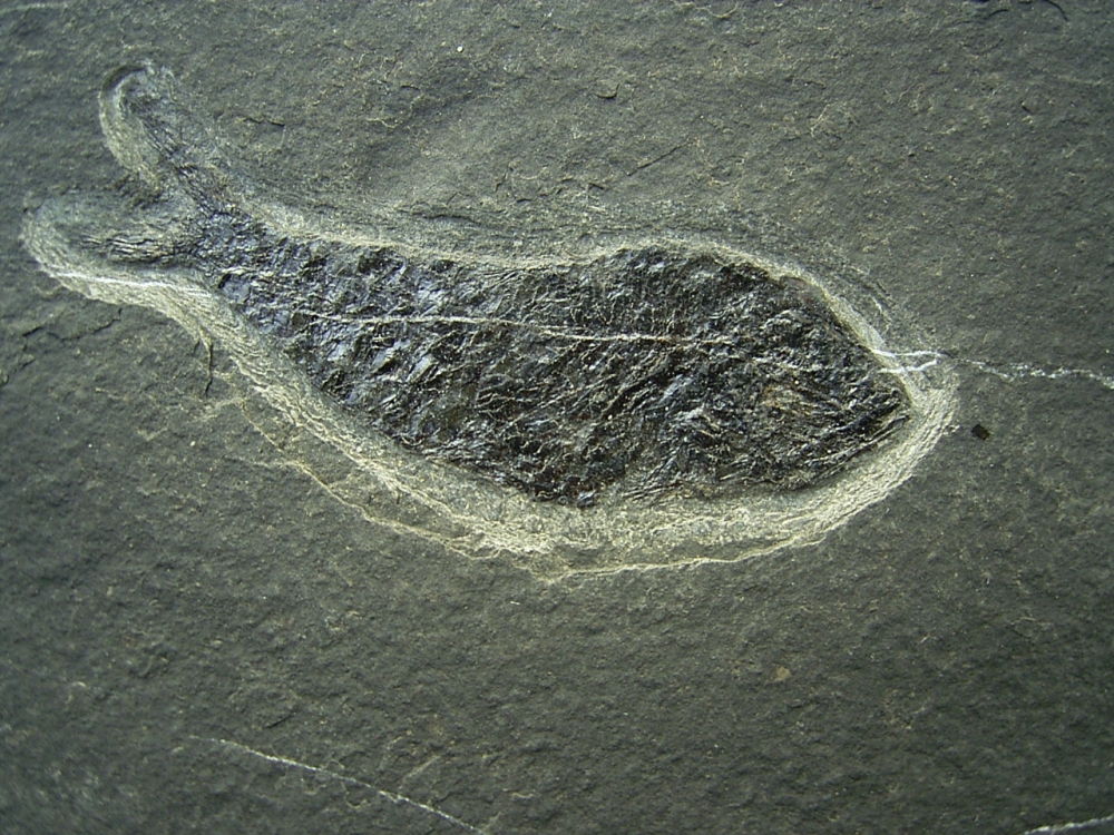 Dieser Fisch Pholidophorus stammt aus der Trias (Nor) von Seefeld, Tirol, Österreich.
