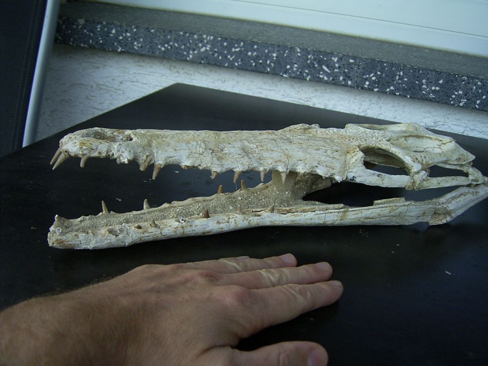 Dieser Schädel eines Krokodils wurde in den kreidezeitlichen Ablagerungen von Marokko gefunden. Er stammt aus den Phosphatminen um Kouribga.