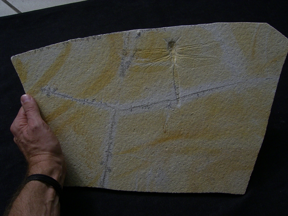 Die Erhaltung des Insektes ist außergewöhnlich gut. Der Körper ist markant ausgeprägt und die Flügeläderung sehr detailreich überliefert. Die Flügelspannweite beträgt beachtliche 17,5 cm.
