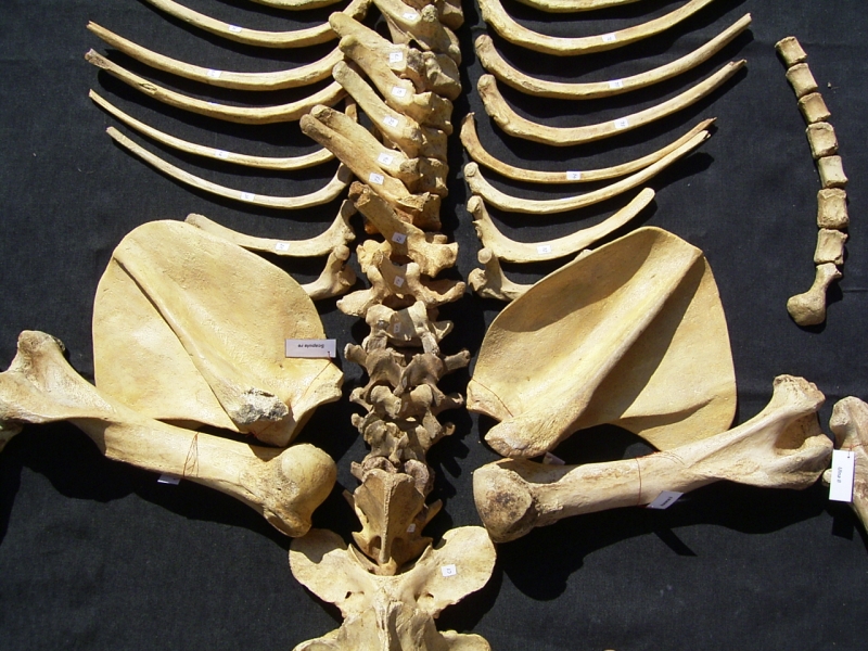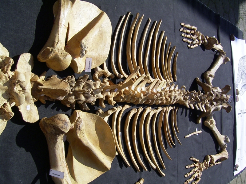 Das Tier ist ausgewachsen, es misst etwa 2,20 Meter. Alle Knochen sind vorhanden, es fehlt nichts! Es handelt sich um ein Composit, das heißt das Skelett wurde aus Knochen von verschiedenen Individuen zusammengestellt. Dies ist eine gängige Praxis. Dabei wurde größten Wert darauf gelegt, dass die Knochen von der Größe und Form her auch gut zusammen passen. Mehrere Jahre gingen ins Land bis alle Knochen in der richtigen Größe vorhanden waren.