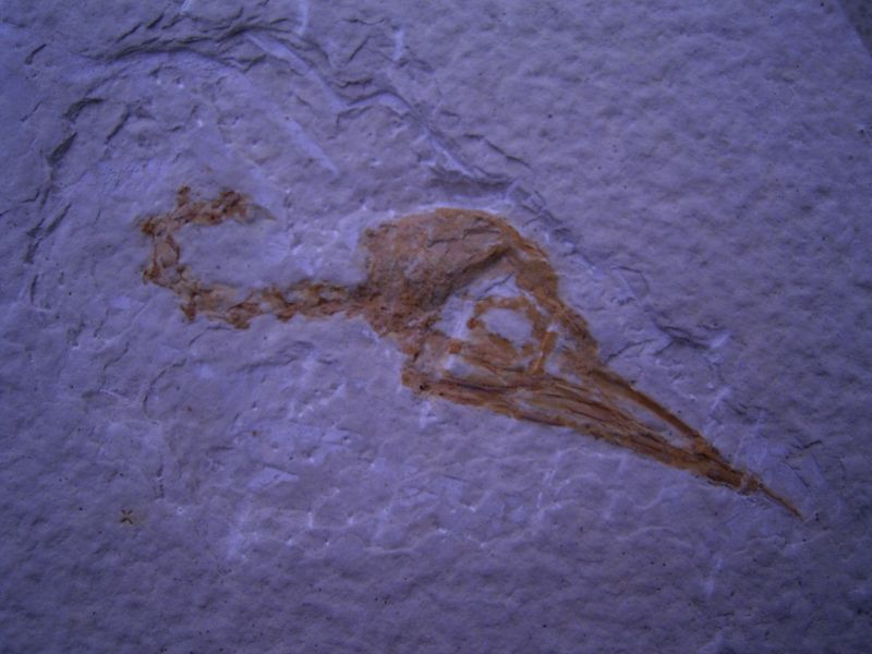 Dieser Vogel-Schädel stammt aus dem Eozän, Fundort: Kemmerer, Green River Formation, Wyoming, USA. (sie kennen sicher die massenhaft angebotenen Fische von dort), Vogelfossilien von diesem Fundort sind absolute Raritäten! Die seltenen Einzelfunde verschwinden meist sofort in Museen.