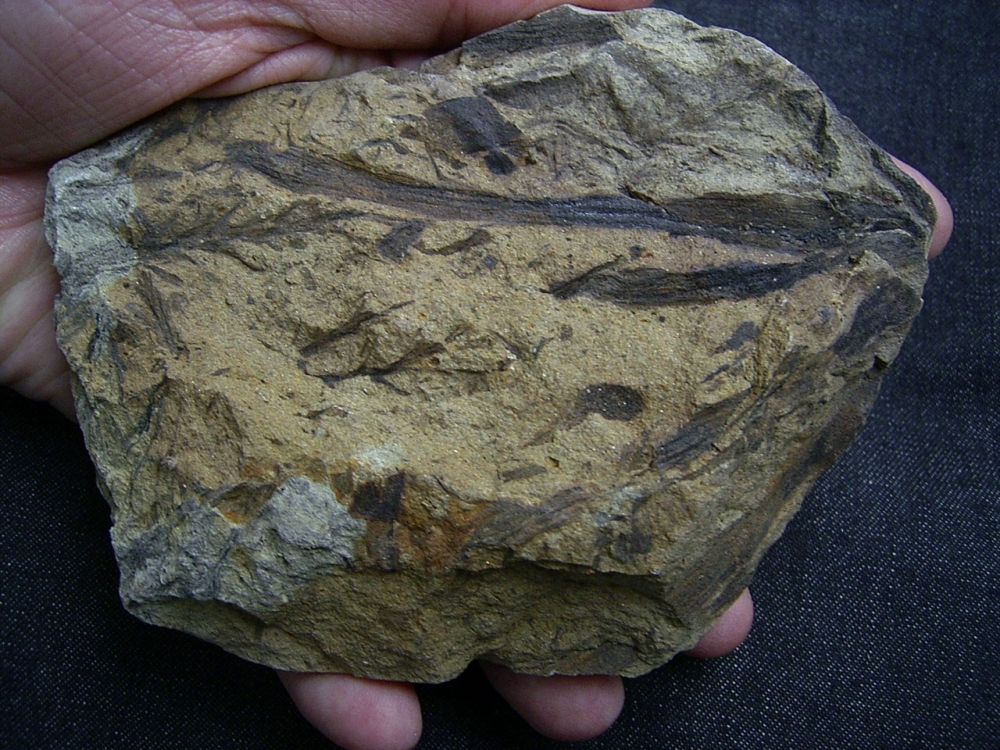 Diese Platte mit diversen Pflanzenfossilien stammt aus devonzeitlichen Schichten des Bergischen Landes.