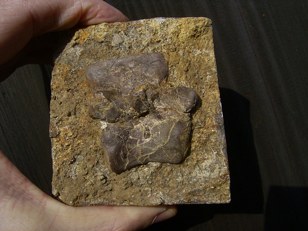 Der Wirbel ist komplett erhalten - Wirbelkörper mit Dornfortsatz. Er misst etwa 5 x 4,5 cm. Der Stein ist original und ungebrochen, er misst etwa 8 x 7 x 3 cm.