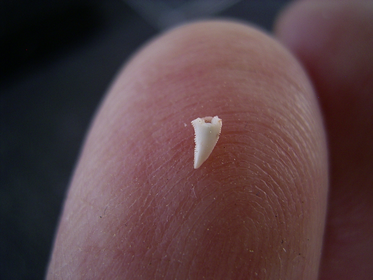 Der Zahn ist toll erhalten, man erkennt deutlich auf beiden Seiten die für Raubsaurier typischen Sägekanten.