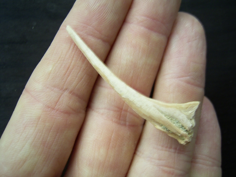 Dieser Knochenfisch Flossenstachel stammt aus Mio-Pliozänen Sedimenten der Huarra Formation. Gefunden wurde das Stück in der Atacama Wüste in Chile.