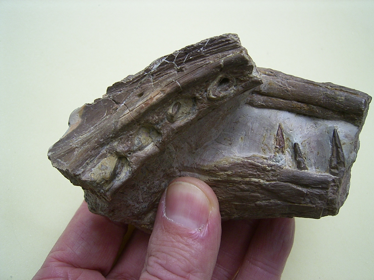 Dieses Schädelteil von Phytosaurus stammt aus dem Keuper von Krasiejow in Polen.