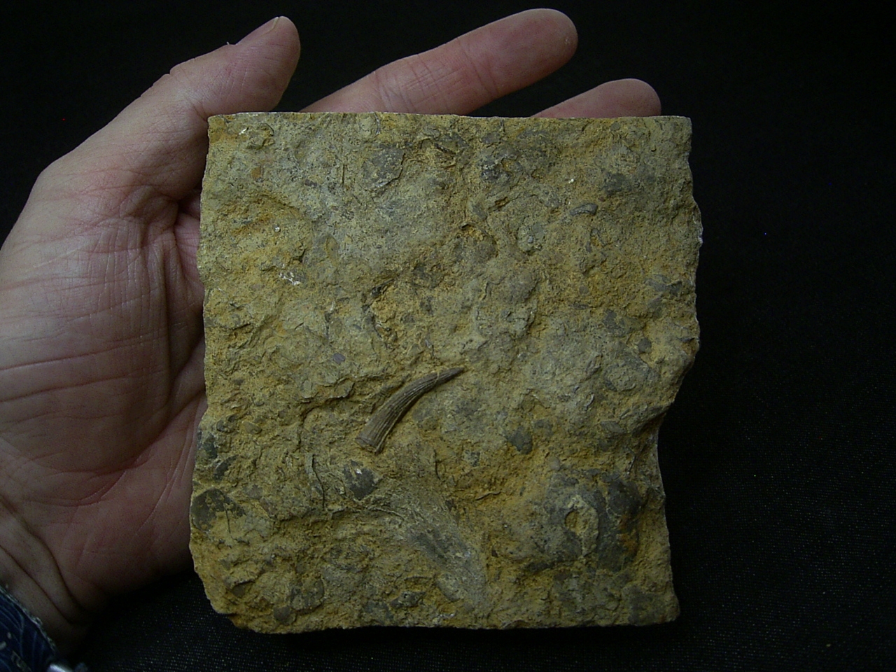 Hier handelt es sich um einen tollen Zahn von des Meeres-Reptils Nothosaurus spec.
