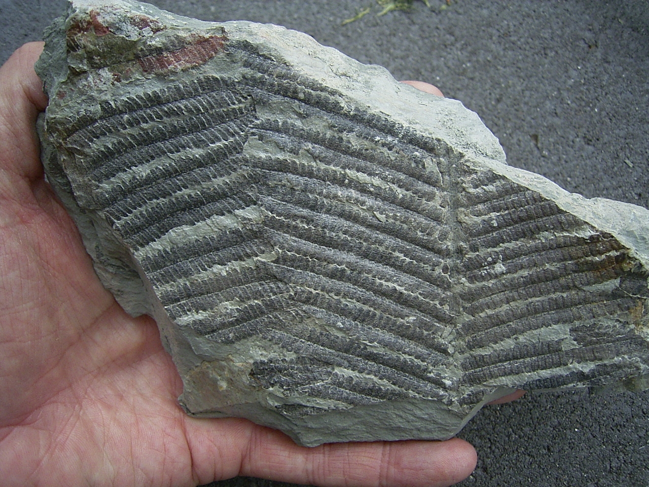 Es befinden sich wunderschöne Fossilien auf beiden Seiten des Steines.