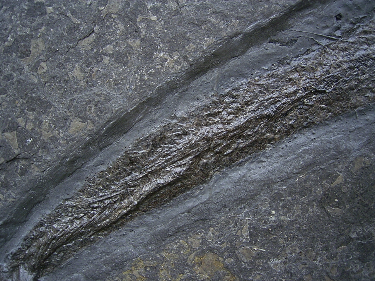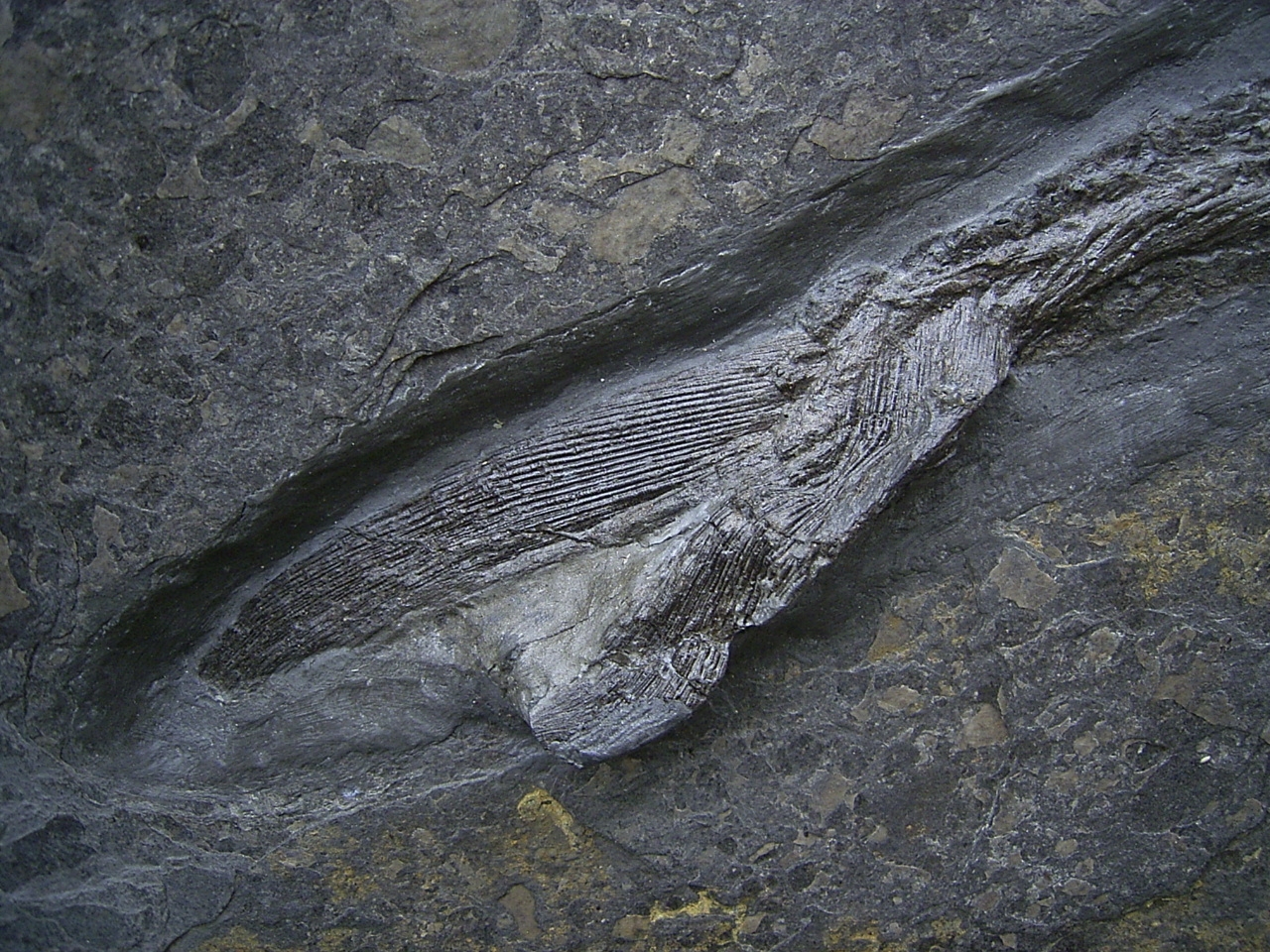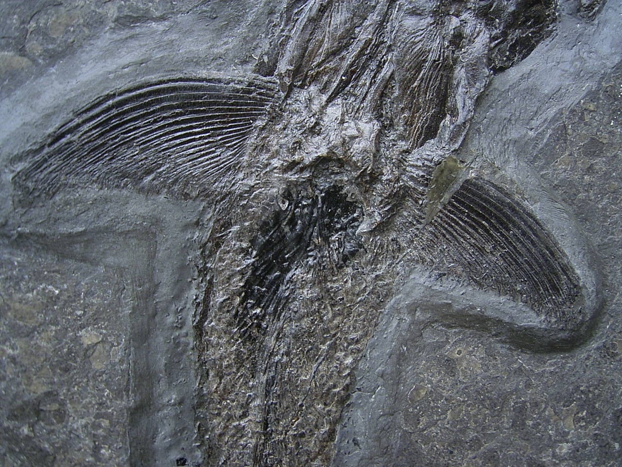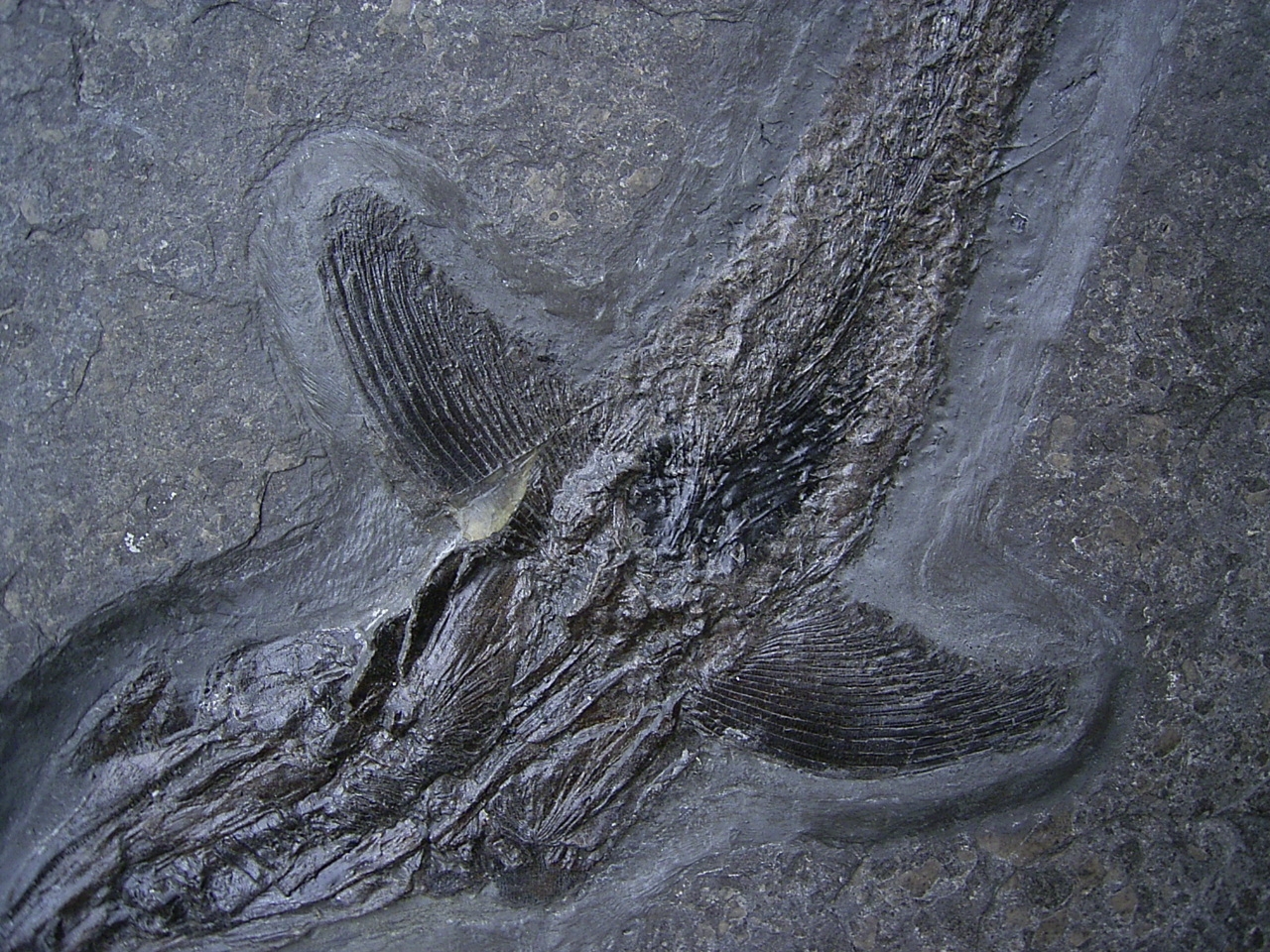 Dieser Pachycormus stammt aus dem Posidonienschofer (Lias epsilon) von Holzmaden. Diese Knochenfische sind heute ausgestorben.