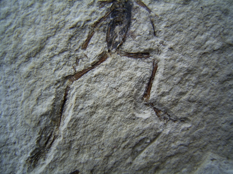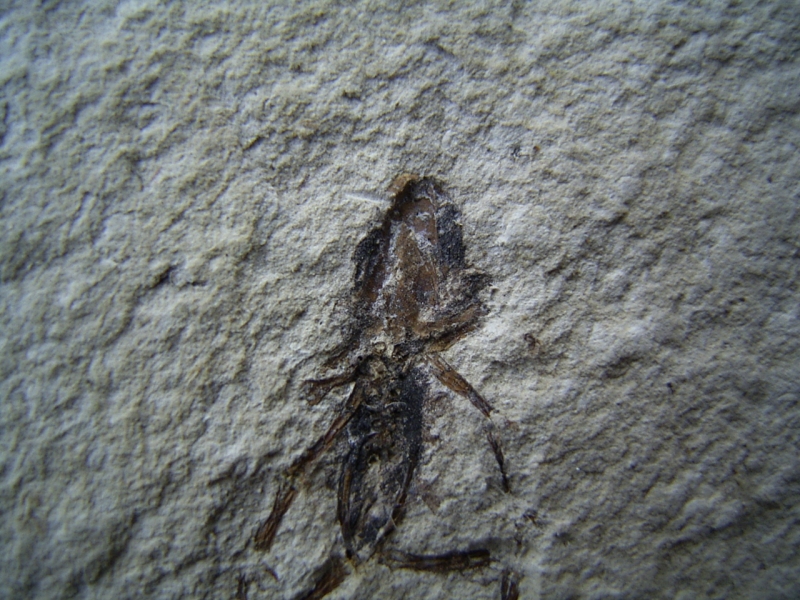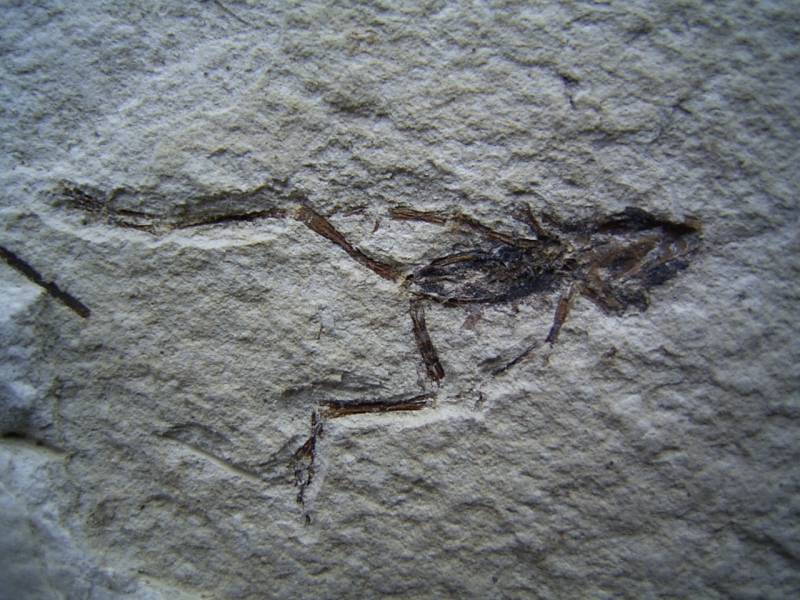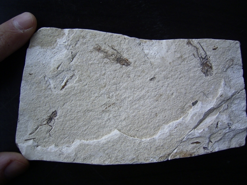 Zum Verkauf steht hier eine recht attraktive Platte mit einem kleinen (noch unbestimmten) Frosch und mehreren Fischen. Das Stück stammt aus plio-pleistozänen Sedimenten vom Rio Sisimico, El Salvador. Die Fundstelle ist sehr interessant, von dort gelangen fast nie Fossilien in den Handel! Das Stück stammt aus einer alten Sammlung.