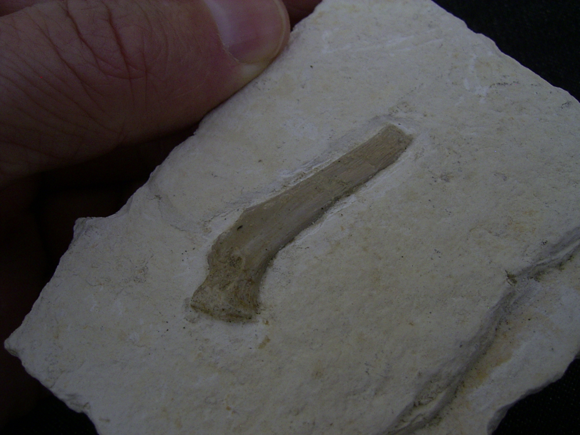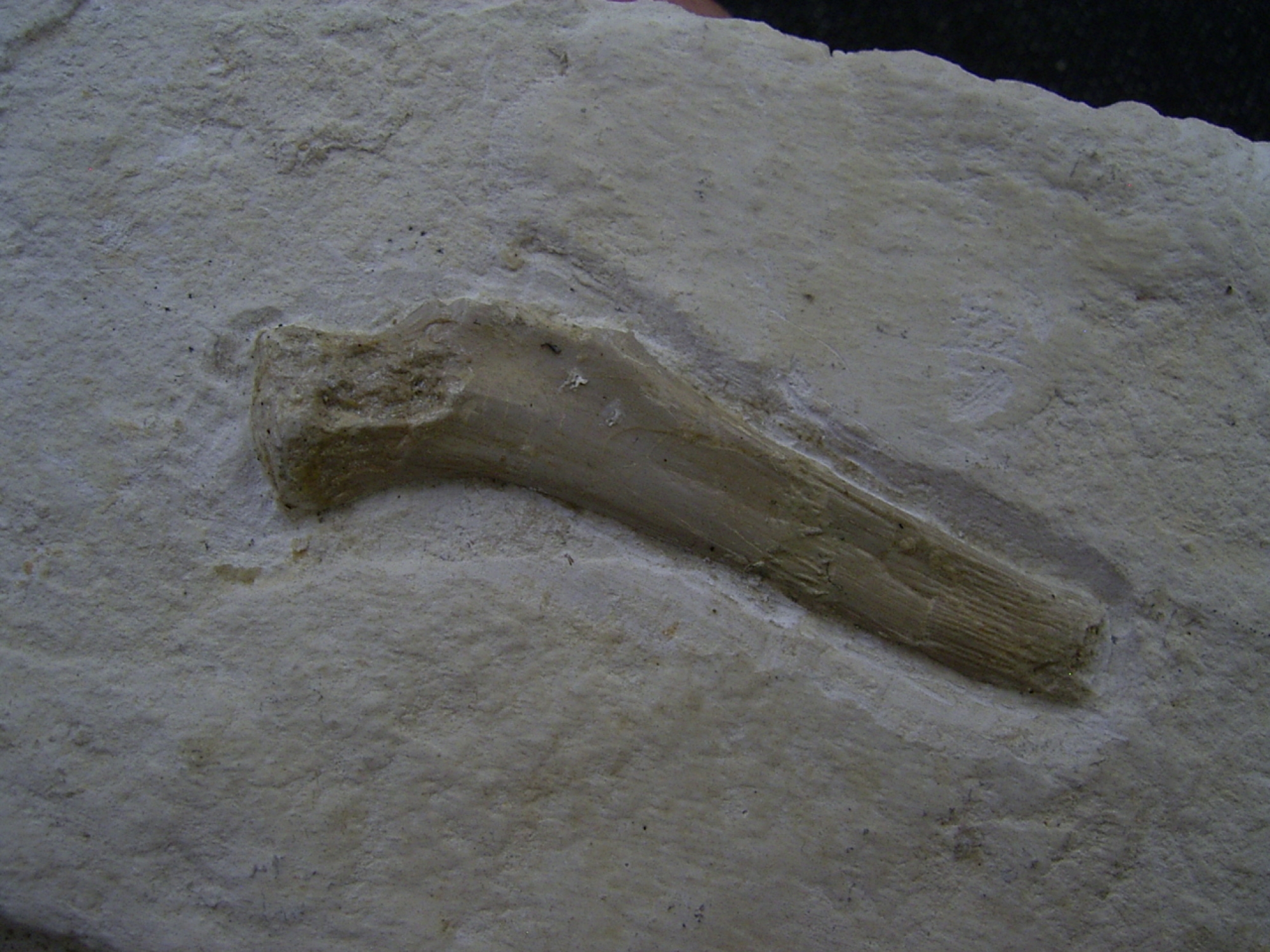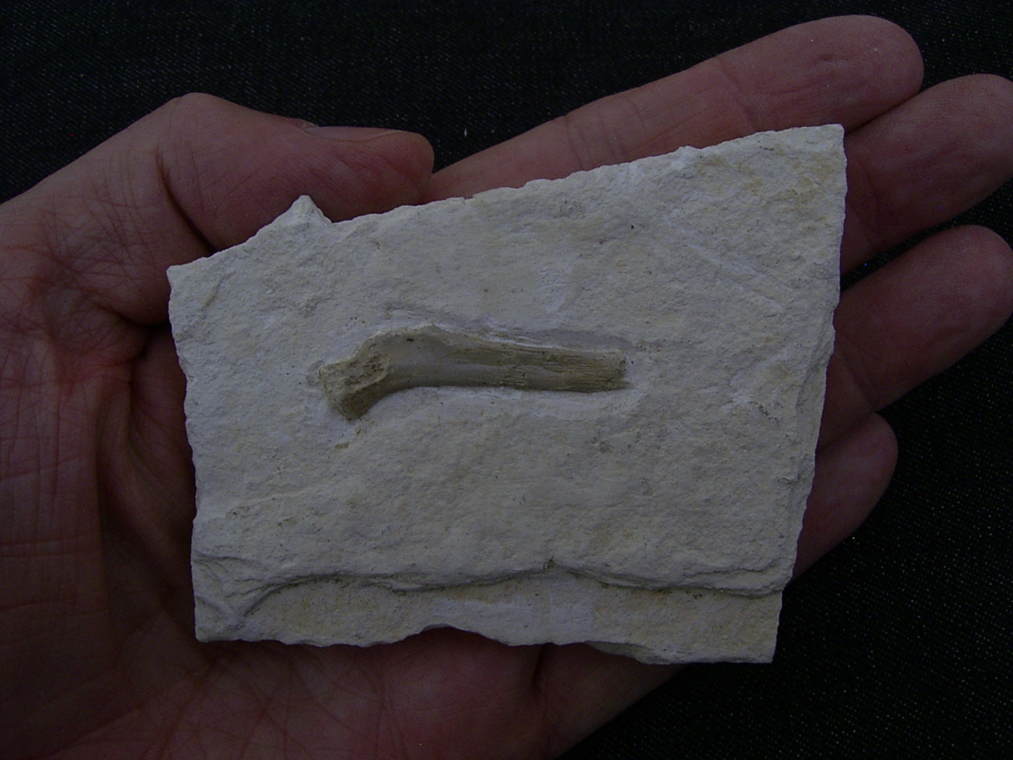 Hier handelt es sich um einen Knochen der Schildkröte Eurysternum wagneri. Das Fossil stammt aus dem oberen Jura (Malm zeta) von Painten. Es ist etwa 149 Millionen Jahre alt.