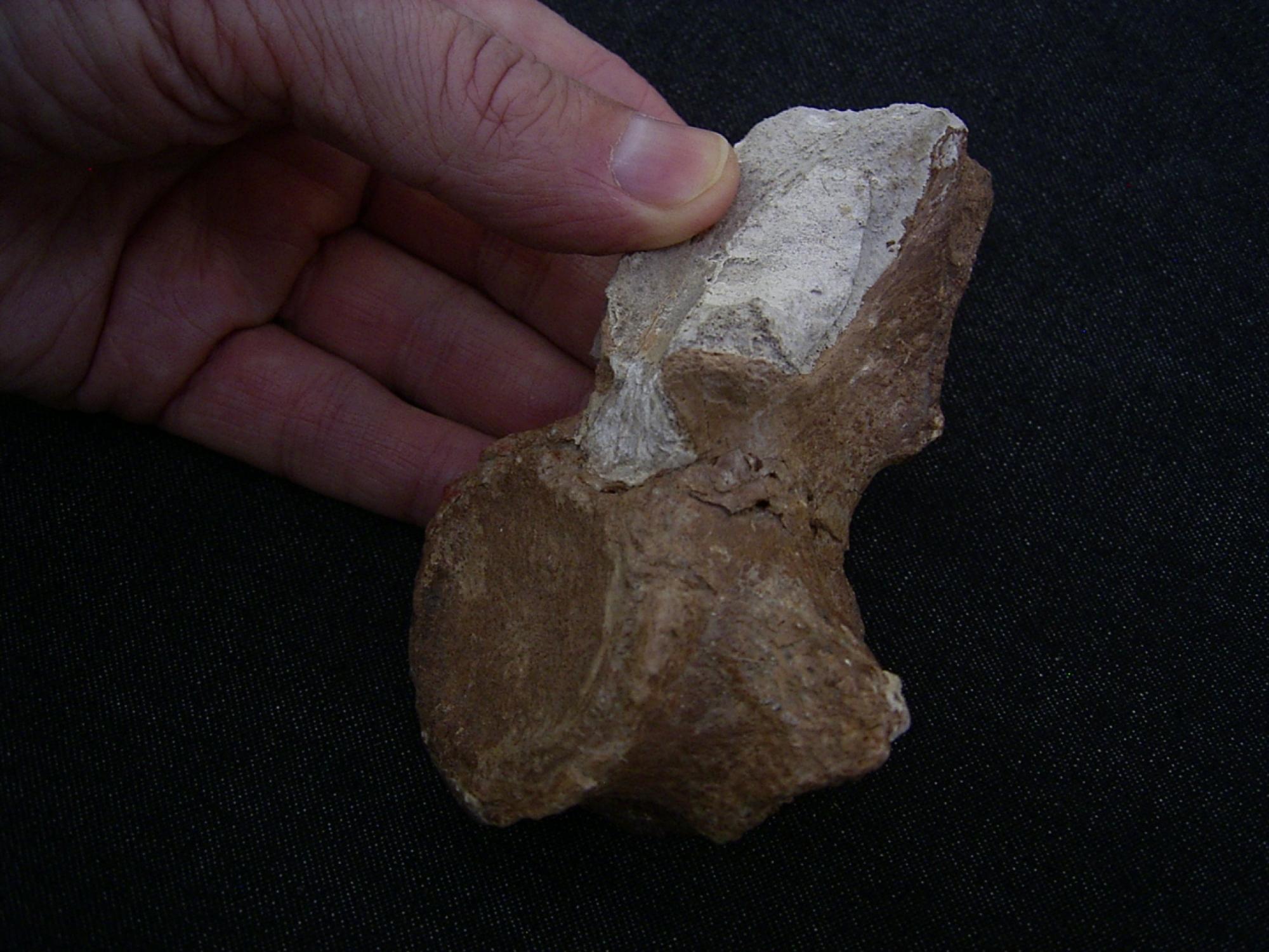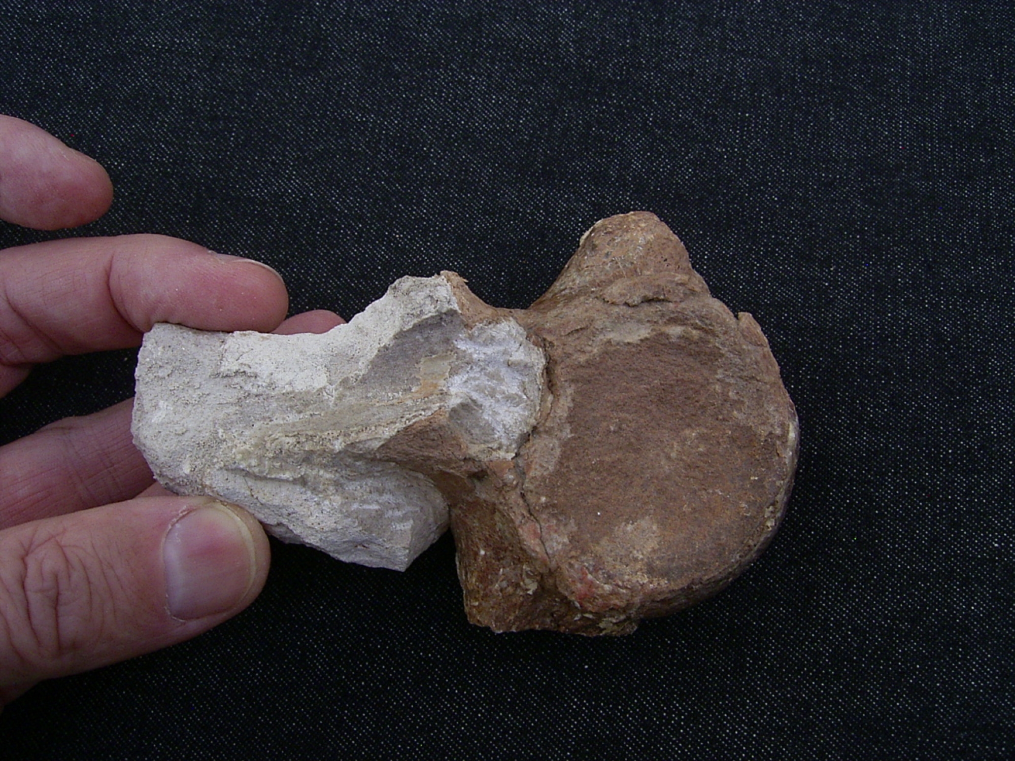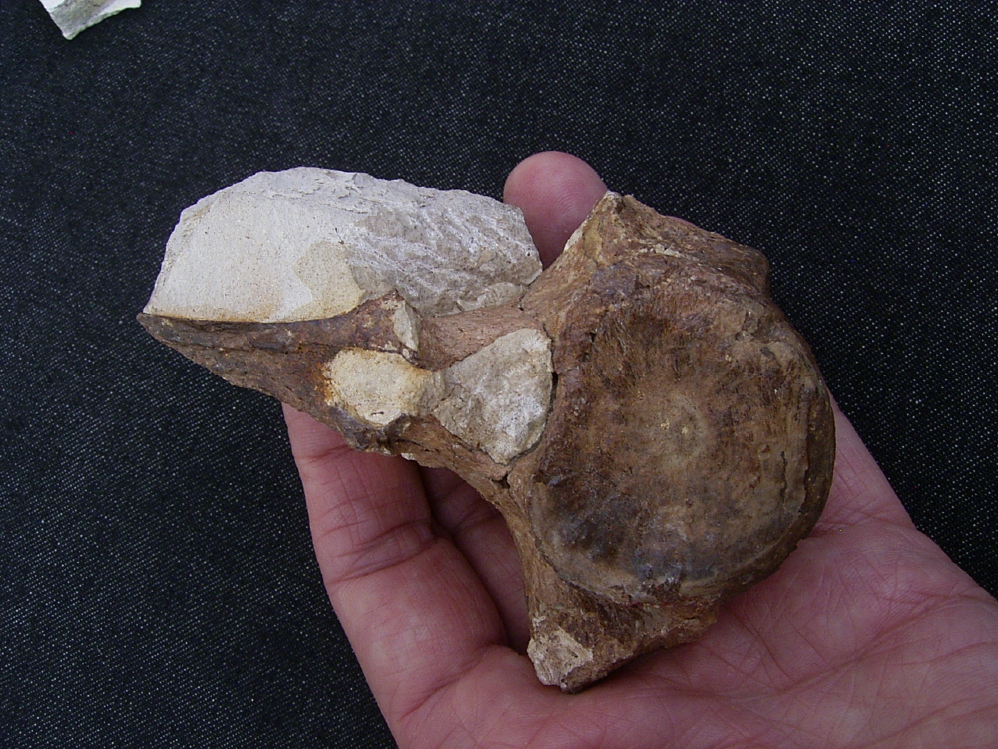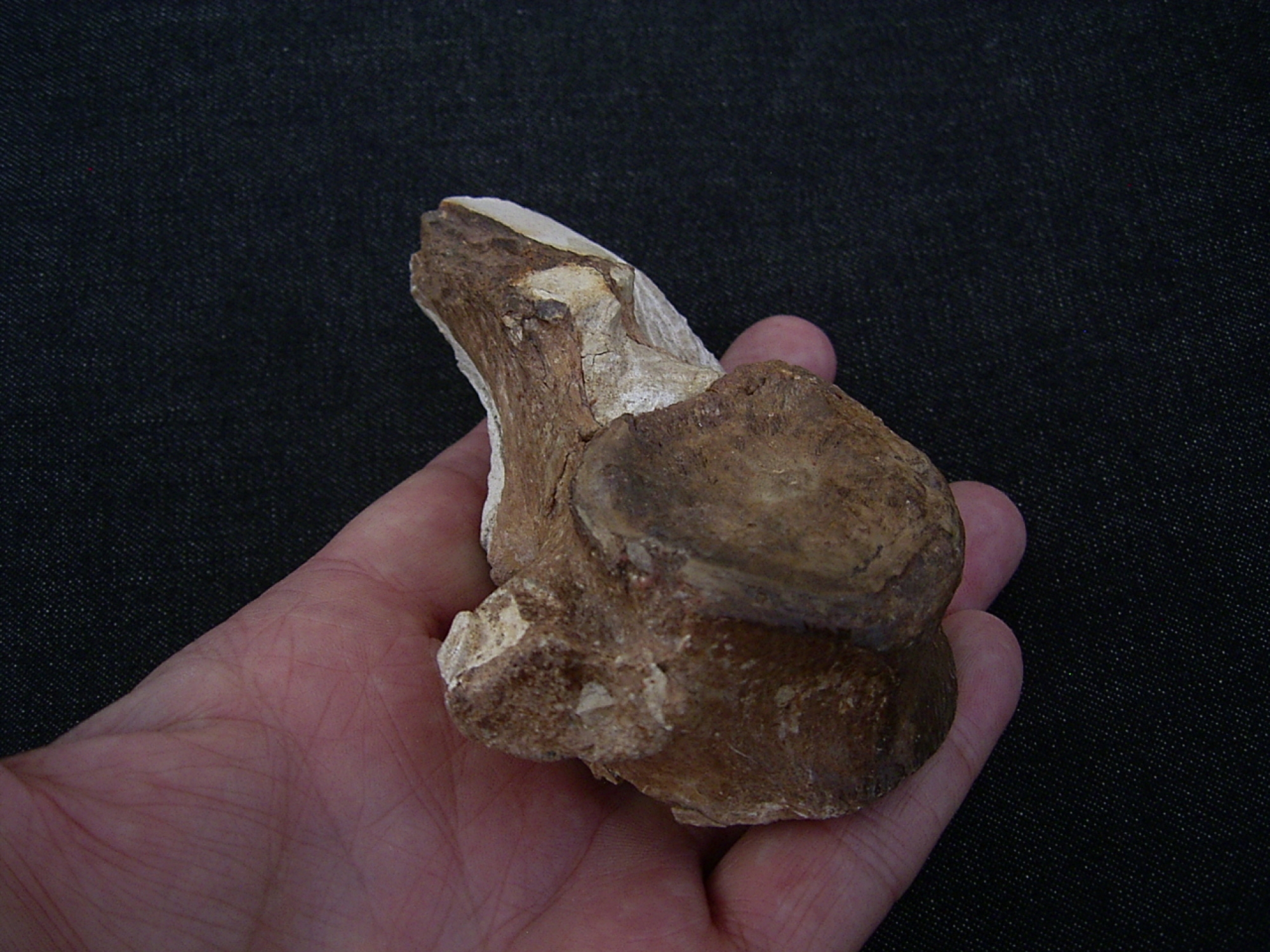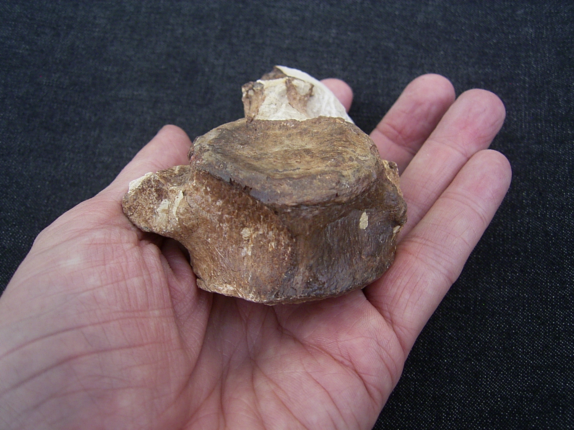 Das Fossil ist recht gut erhalten - sogar mit Dornfortsatz, es misst etwa 10,5 x 8 x 4,6 cm.