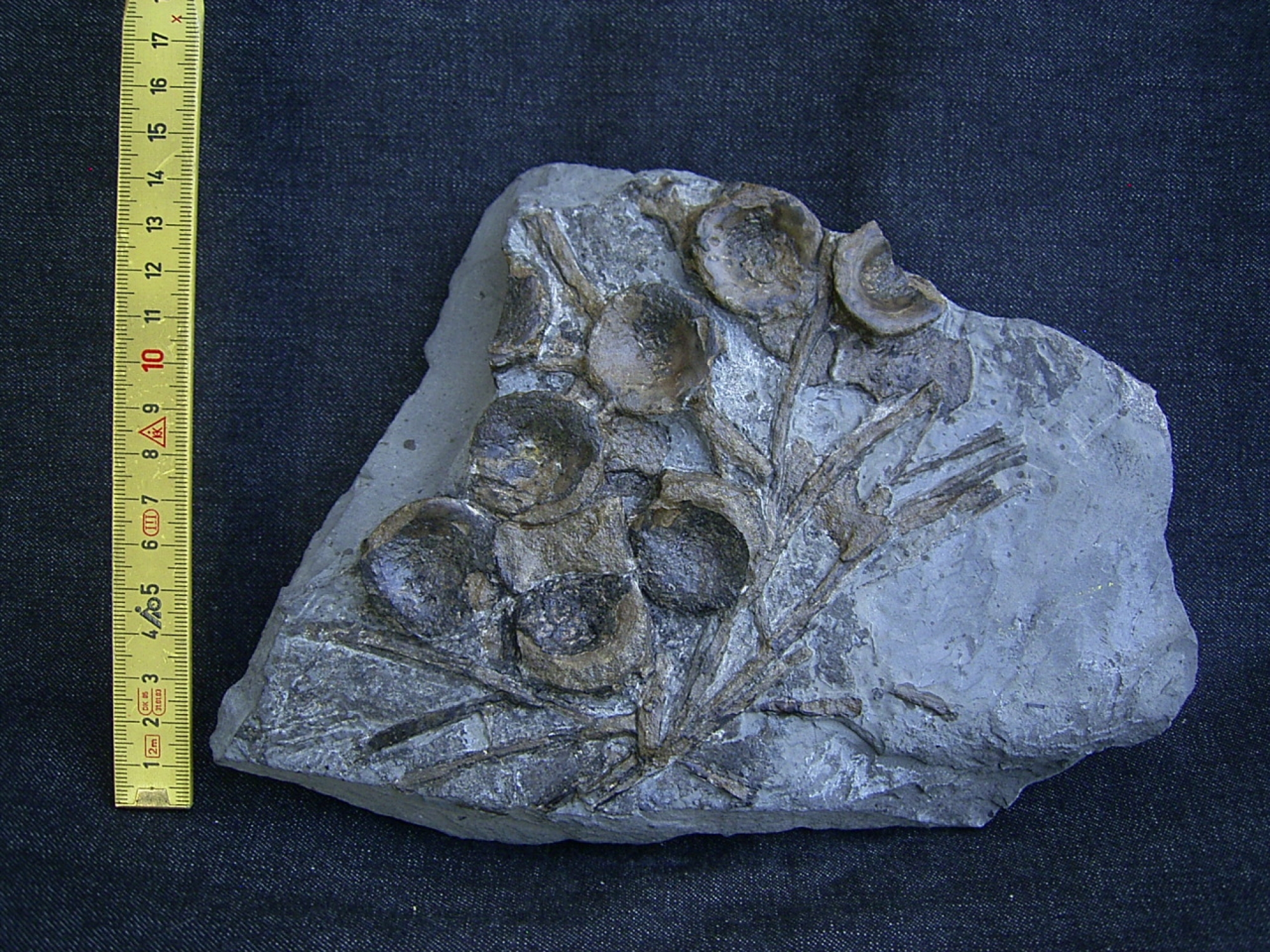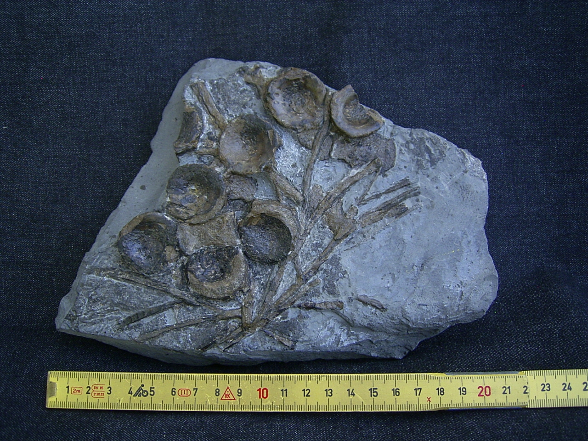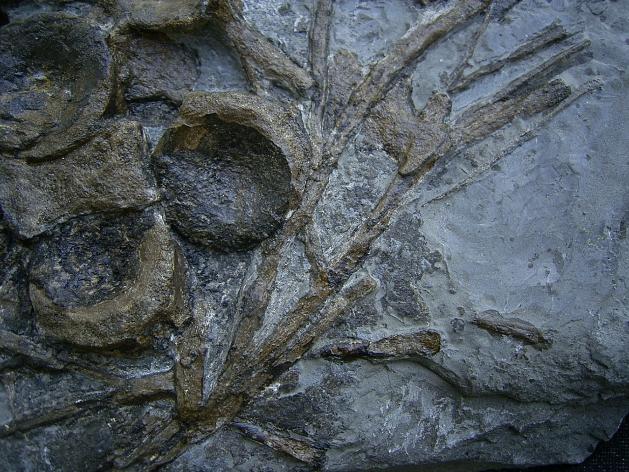 Diese Platte mit Knochen vom Ichthyosaurier Stenopterygius spec. stammt aus dem unteren Jura (Lias epsilon) von Holzmaden.