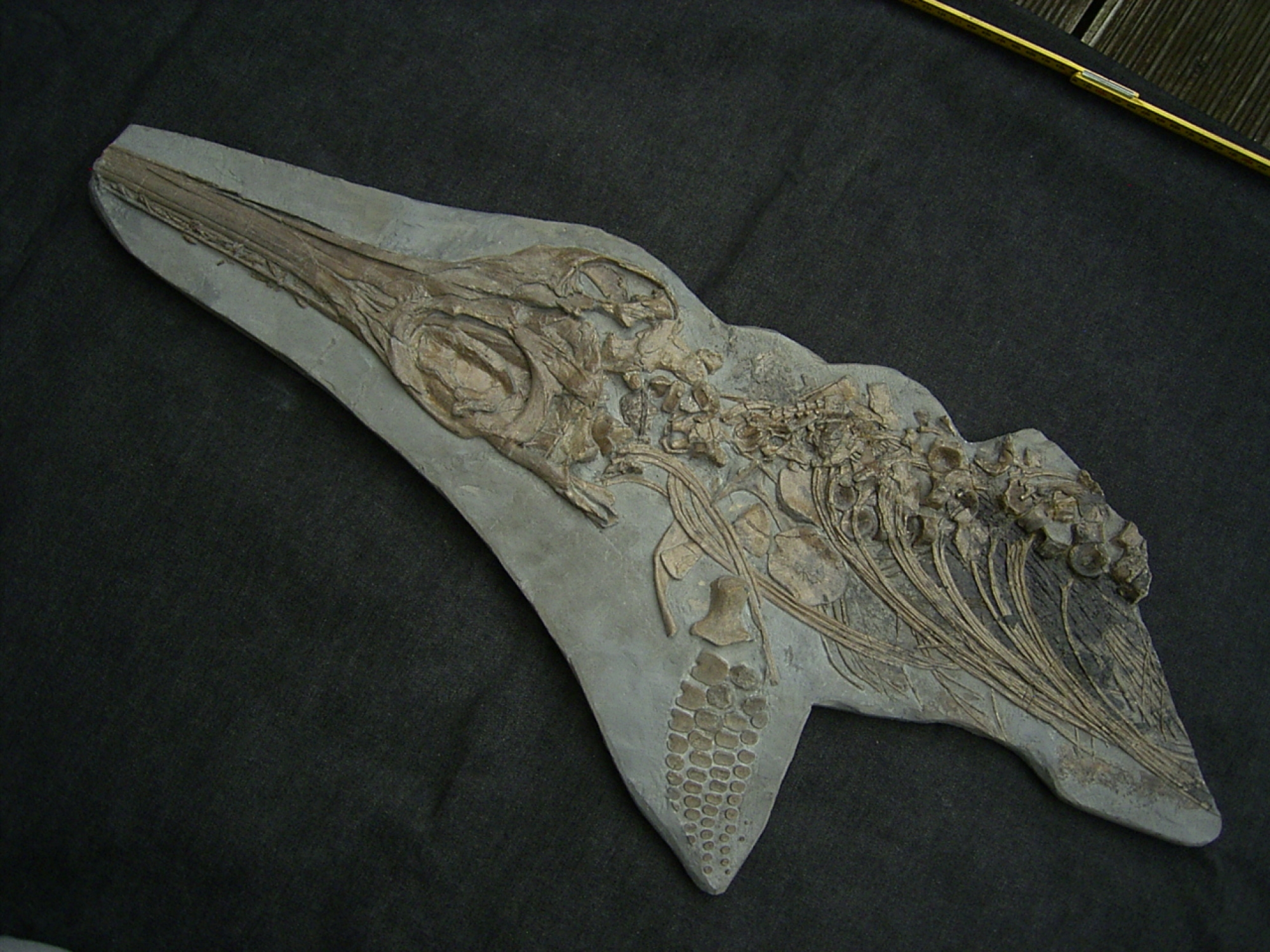 Dieser kleine Ichthyosaurier stammt aus dem unteren Jura (Lias epsilon) und ist etwa 180 Millionen Jahre alt. Er wurde gefunden in den berühmten Sedimenten von Holzmaden.