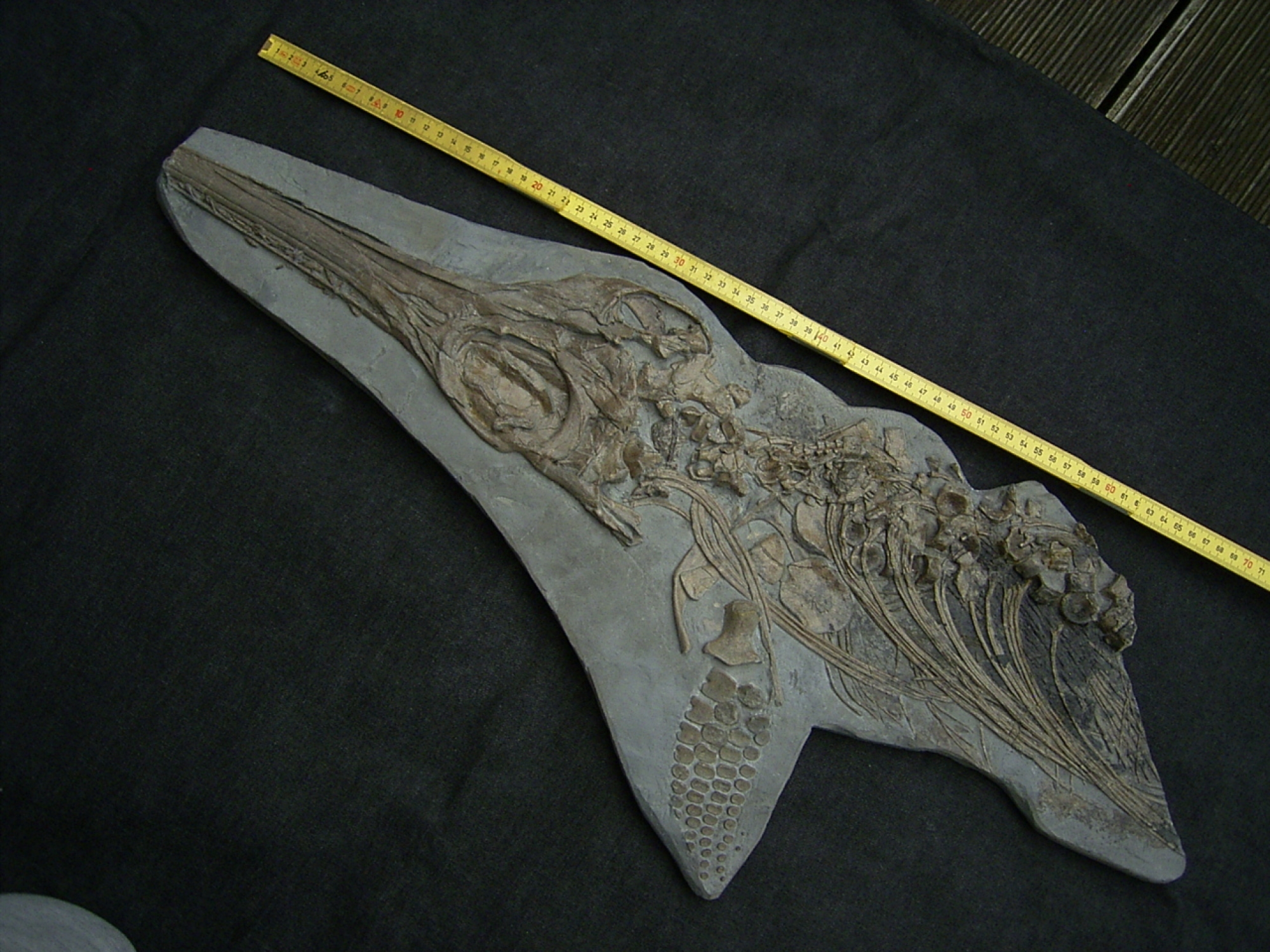 Es gibt kaum noch aktive Steinbrüche um Holzmaden und es stehen nur selten Ichthyosaurier von dort zum Verkauf - oftmals handelt es sich dann um Altfunde die nicht mit moderner Technik präpariert wurden. Früher wurden die Knochen aus dem Gestein geschabt wobei die Knochenhaut (Periosteum) und viele Feinstrukturen verloren gingen.
