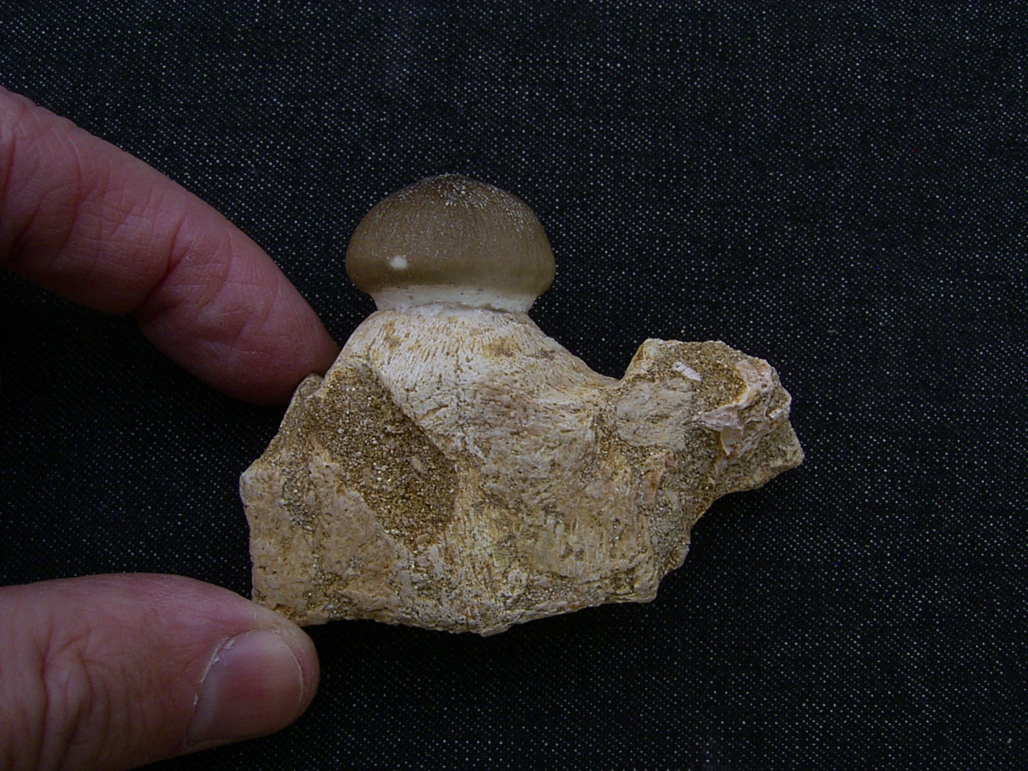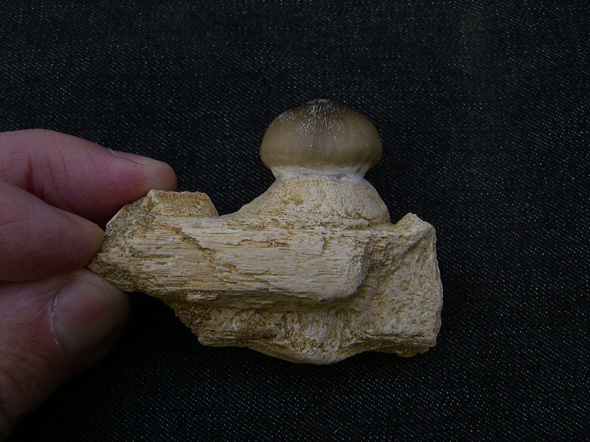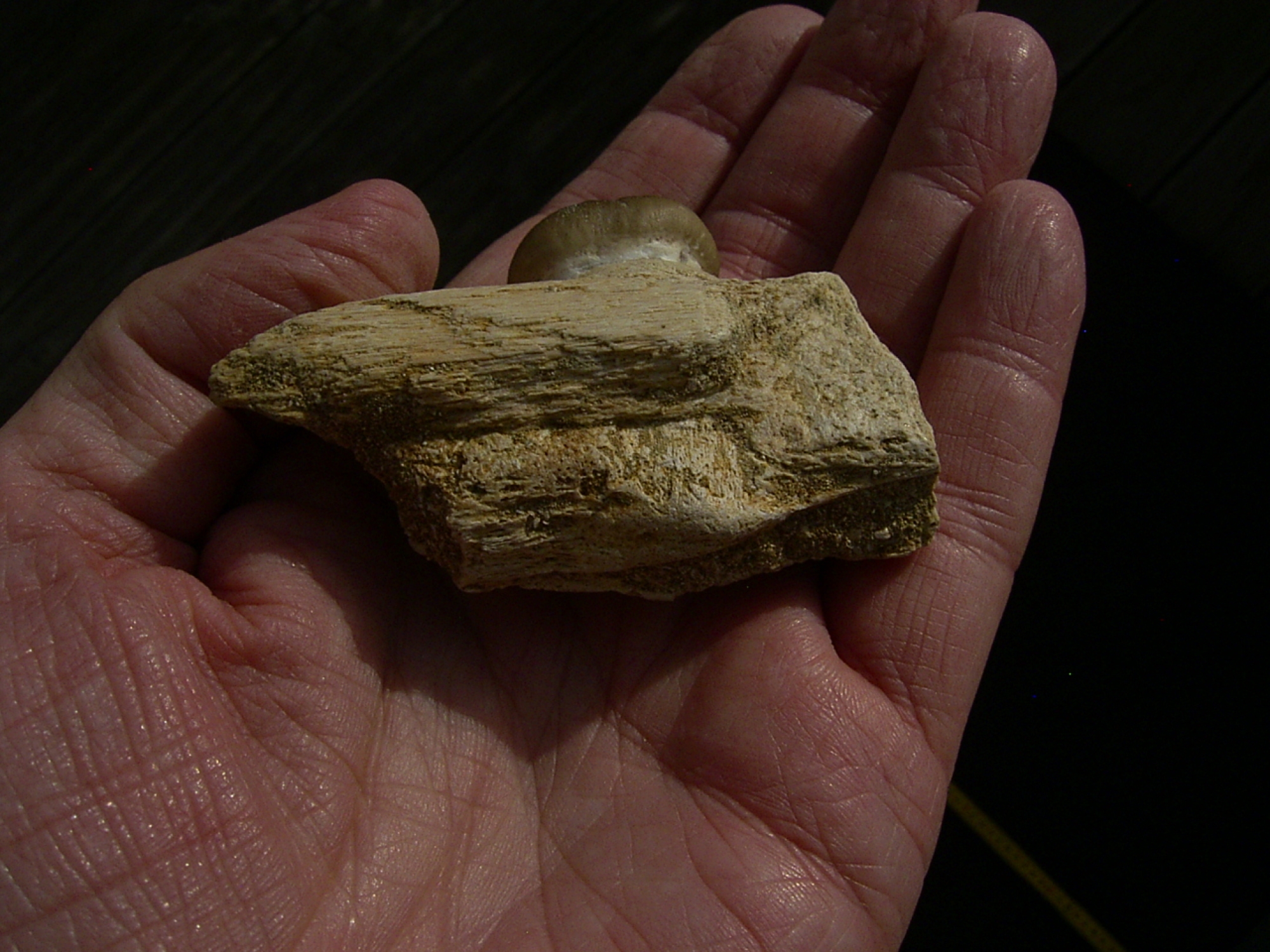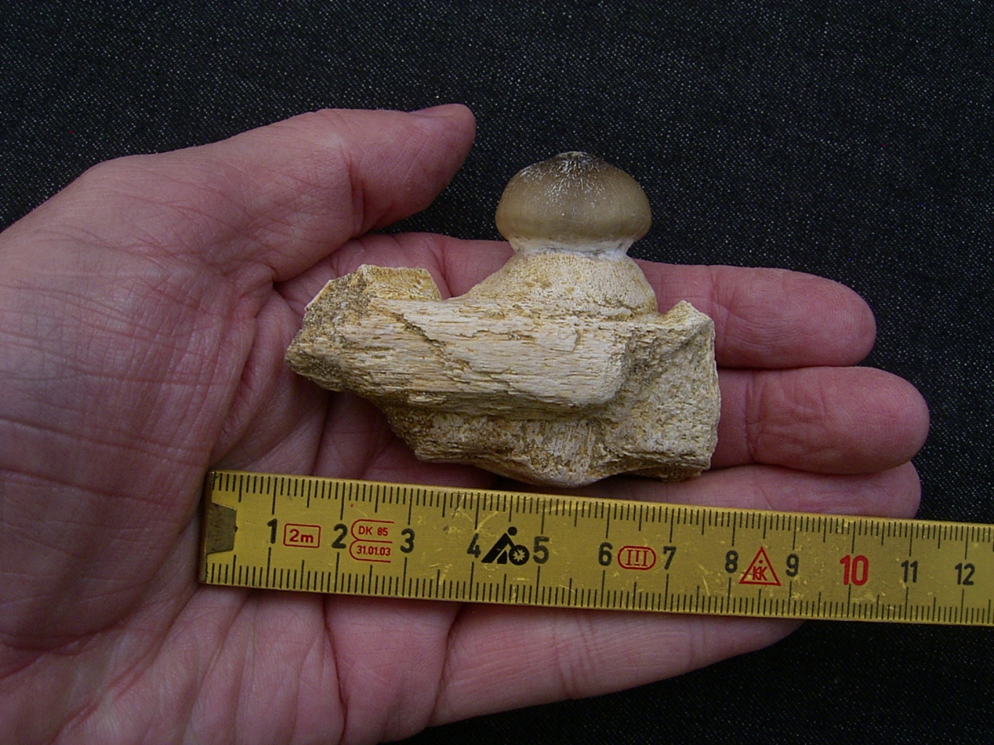 Oftmals werden solche Zähne von den marokkanischen "Präparatoren" in ein Knochenstück eingesetzt um den Eindruck eines Kiefers zu erwecken. Nicht so bei diesem Stück, der Zahn steckt mitsamt der Wurzel im originalen Kiefer.