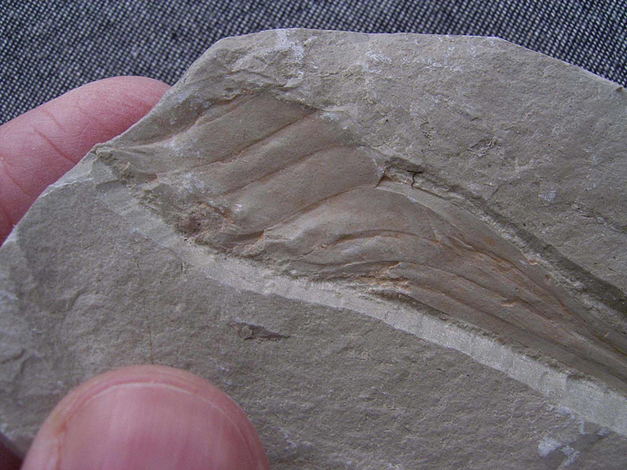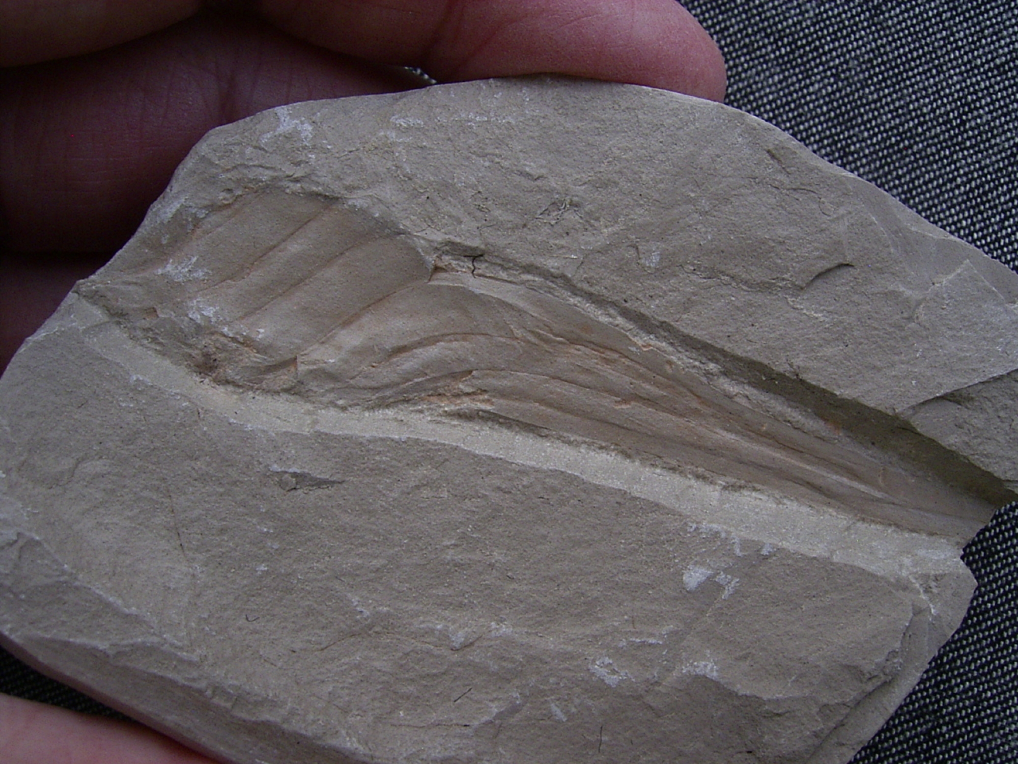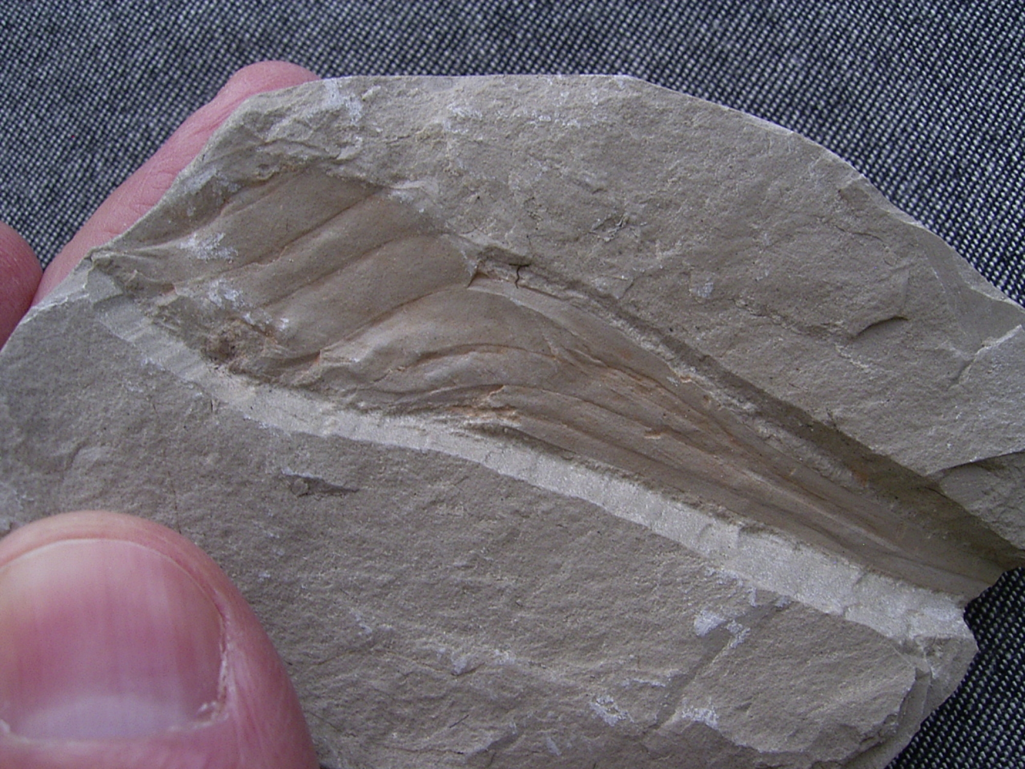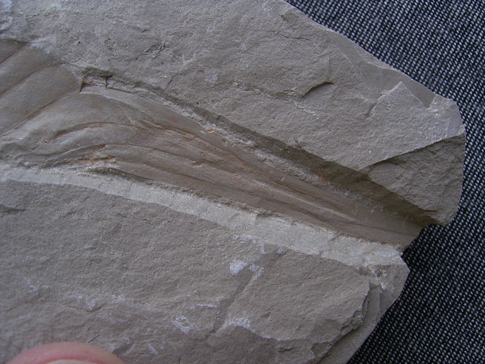 Es handelt sich hier um eine versteinerte Eikapsel (Palaeoxyris) eines Haifisches. Das Fossil wurde gefunden in
