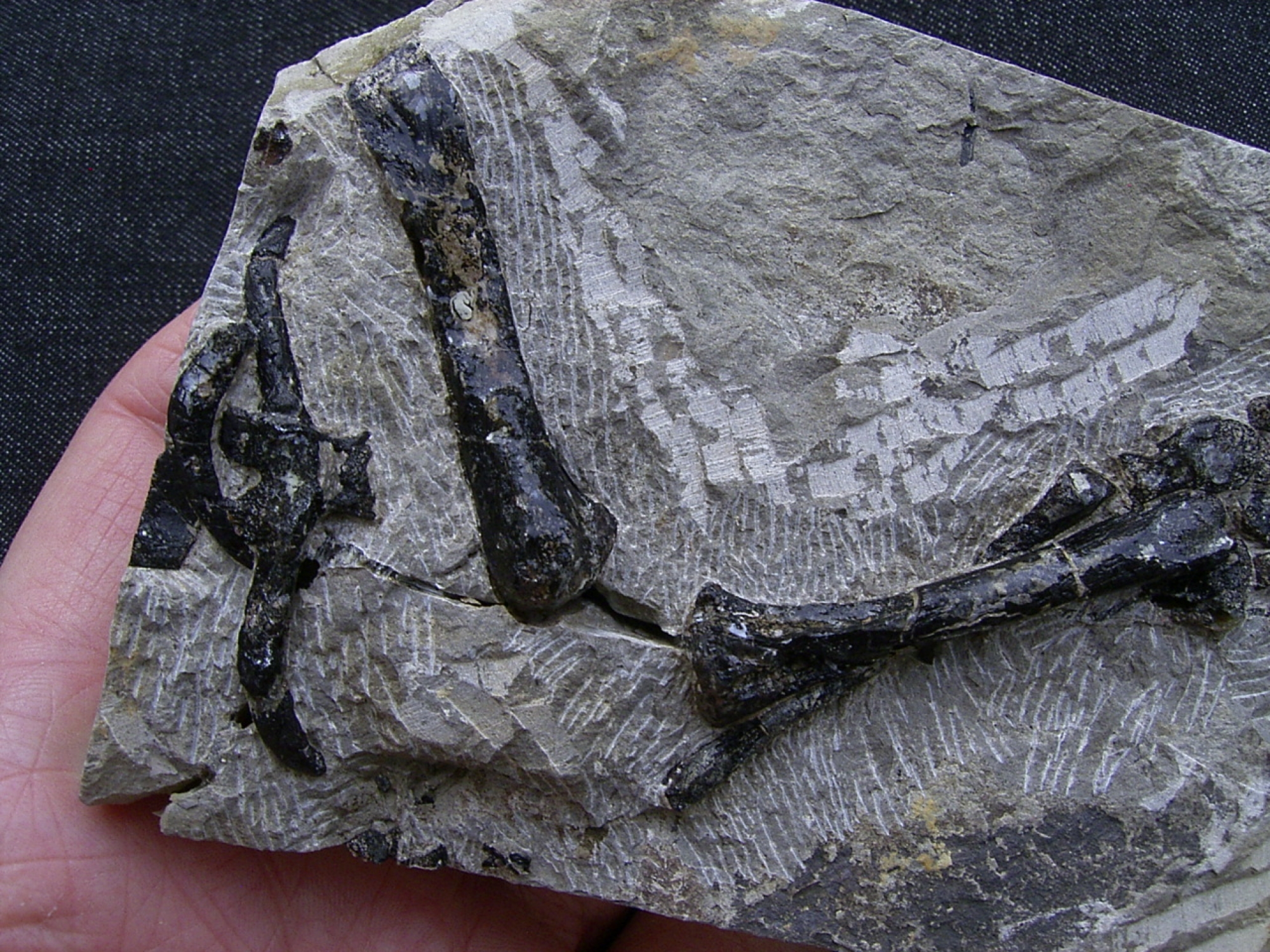 Hier handelt es sich um ein fossiles Bein mit Fuss von Claudiosaurus germaini.