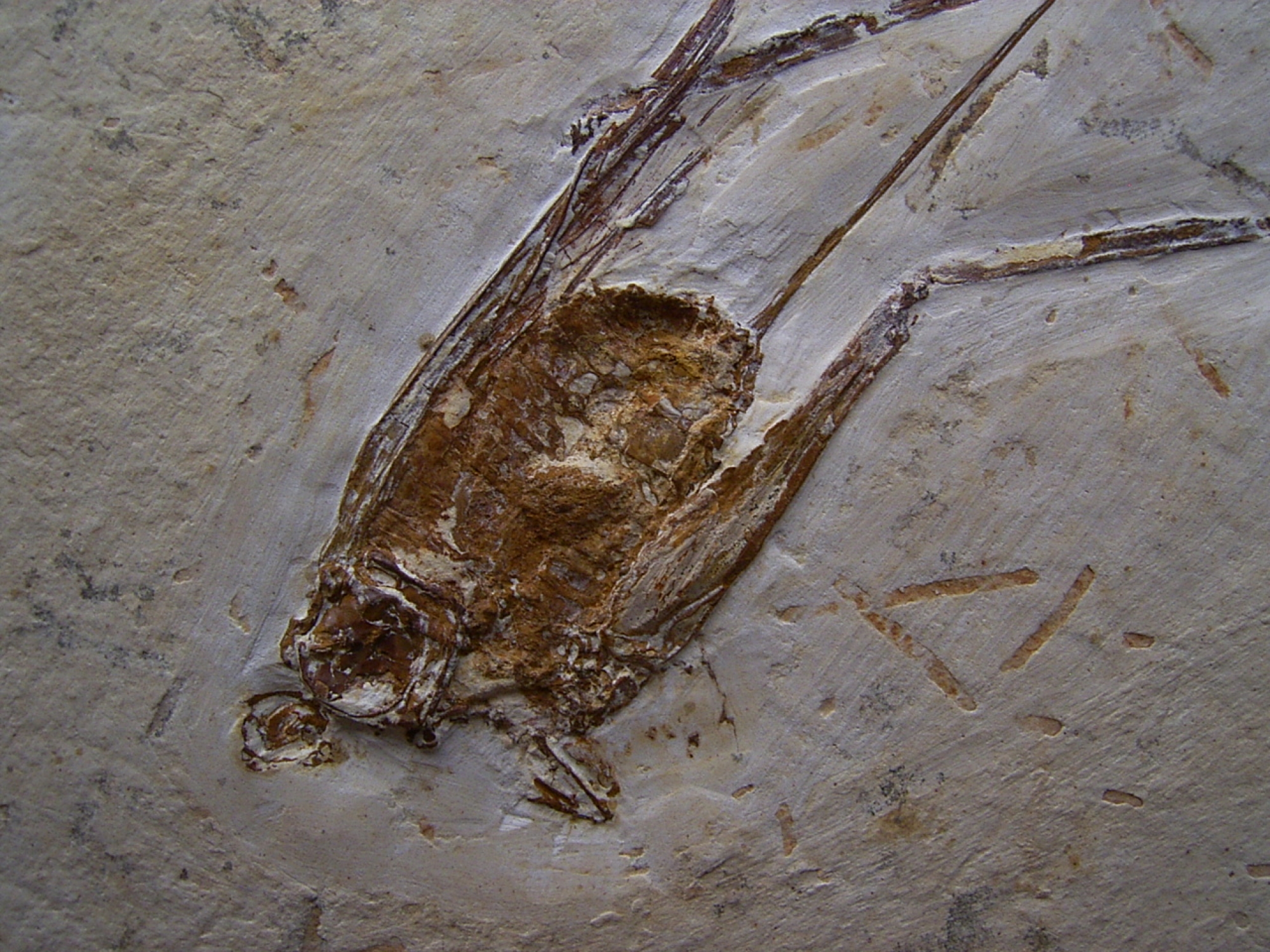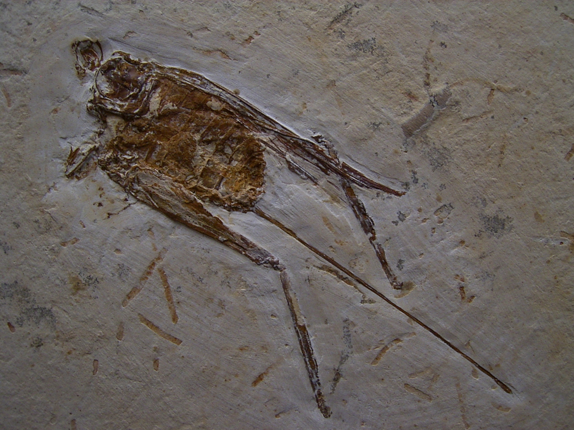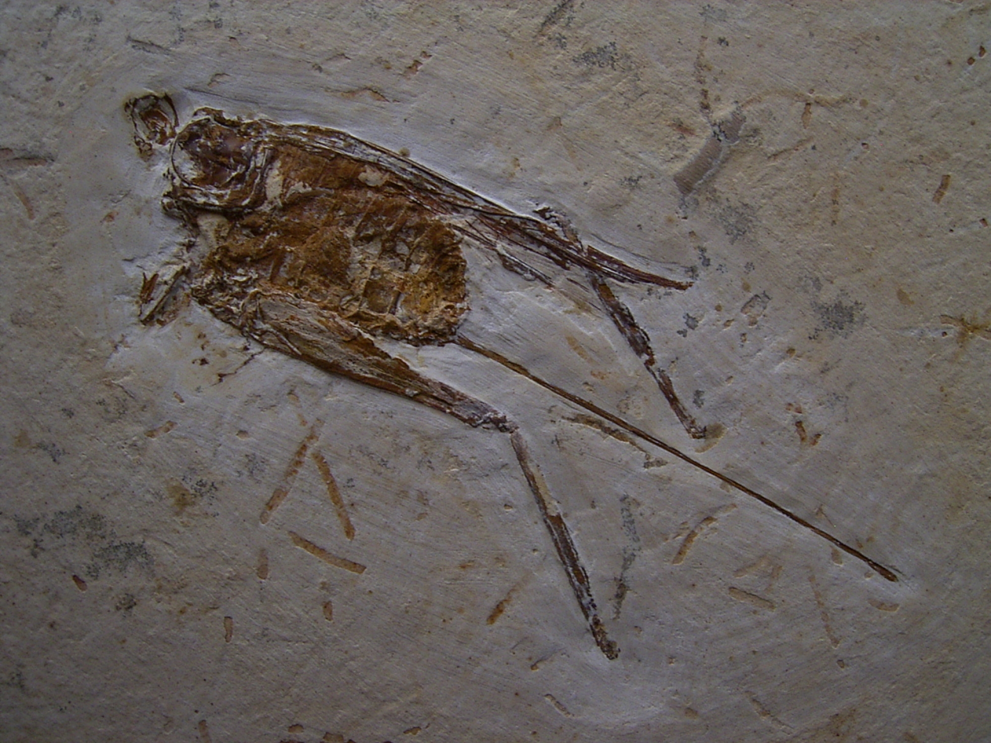 Dieses Fossil eines Grasüpfers stammt aus der unteren Kreide (Crato Formation - Santana Formation) von Nova Olinda (Araripe Becken) von Brasilien. Das Alter dieses Fossiles beläuft sich auf etwa 125 Mio. Jahre.
