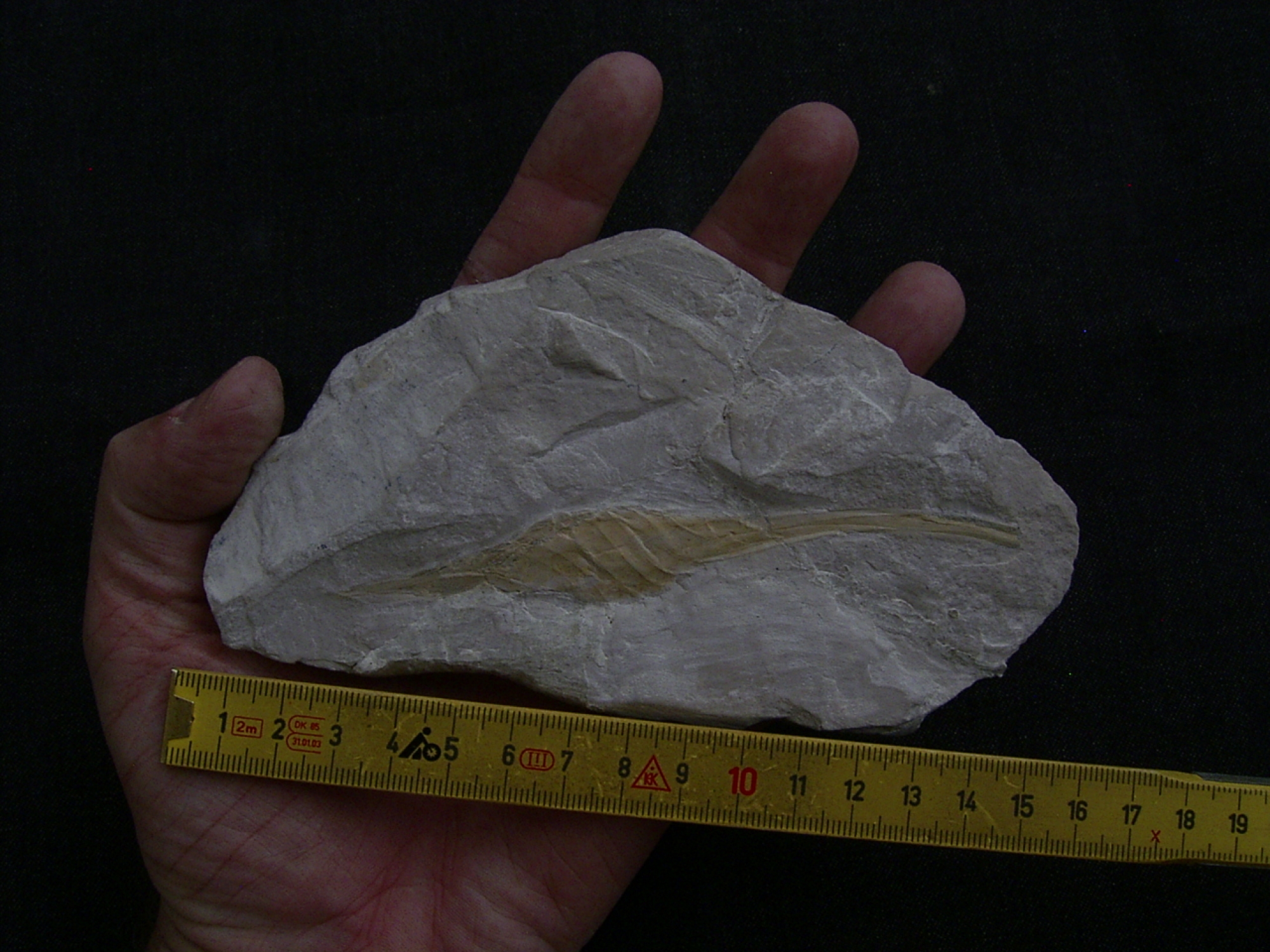 Die groesste messbare Distanz am Fossil beträgt etwa 12,5 cm. Der Stein war gebrochen und wurde professionell verklebt,