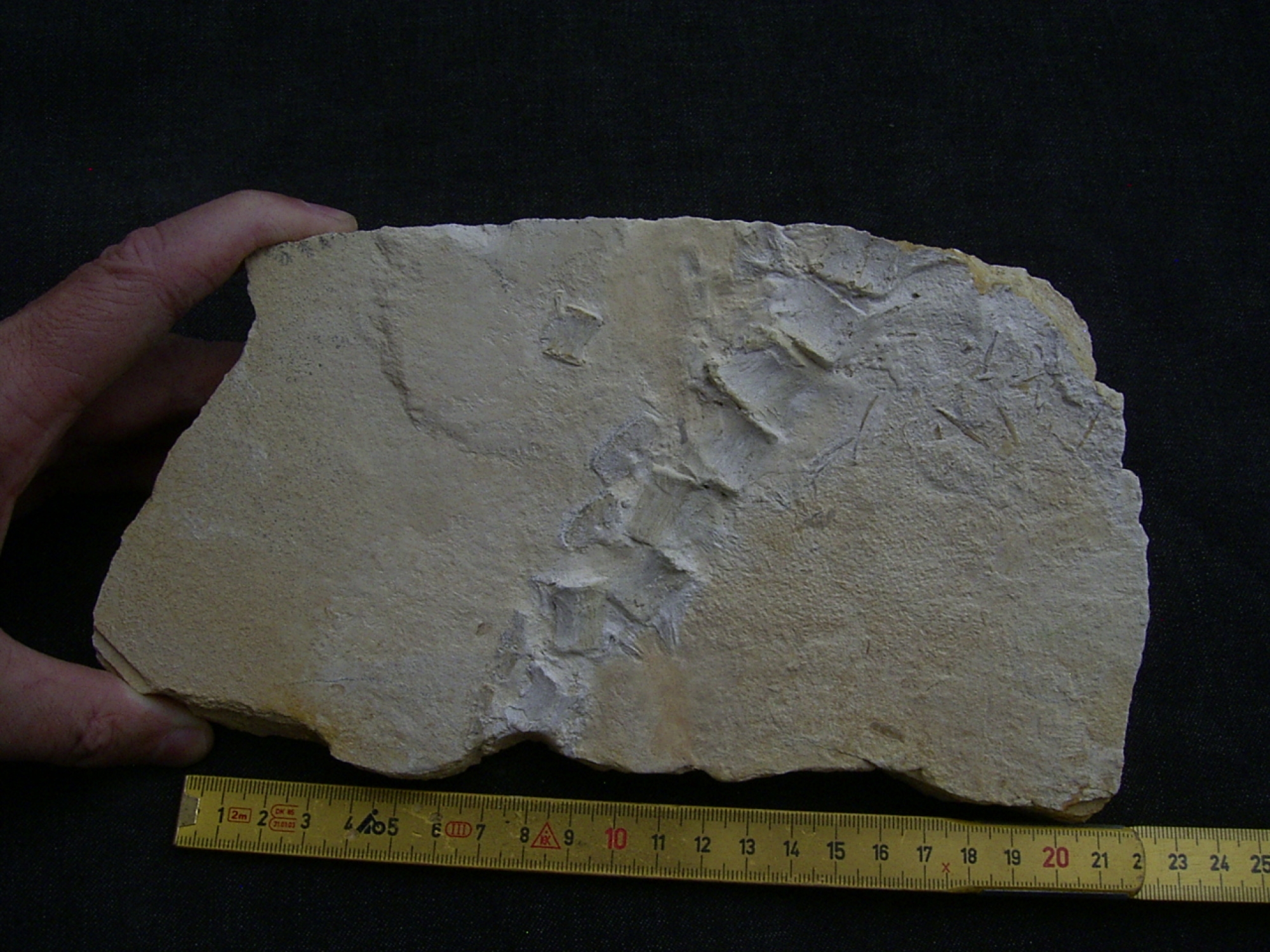 This is the tail spine of the extinct crocodile Metriorhynchus. It comes from the Upper Jurassic deposits – more specifically, the Mörnsheimer Strata (Tithonian - Malm zeta 3). These sediments overlie the Solnhofen Plattenkalk. The fossil is approximately 150 million years old. The stone was broken and measures approximately 24 x 12.5 x 2 cm. Reptile fossils are extremely rare in the Mörnsheimer Strata. No manipulations! ON HOLD