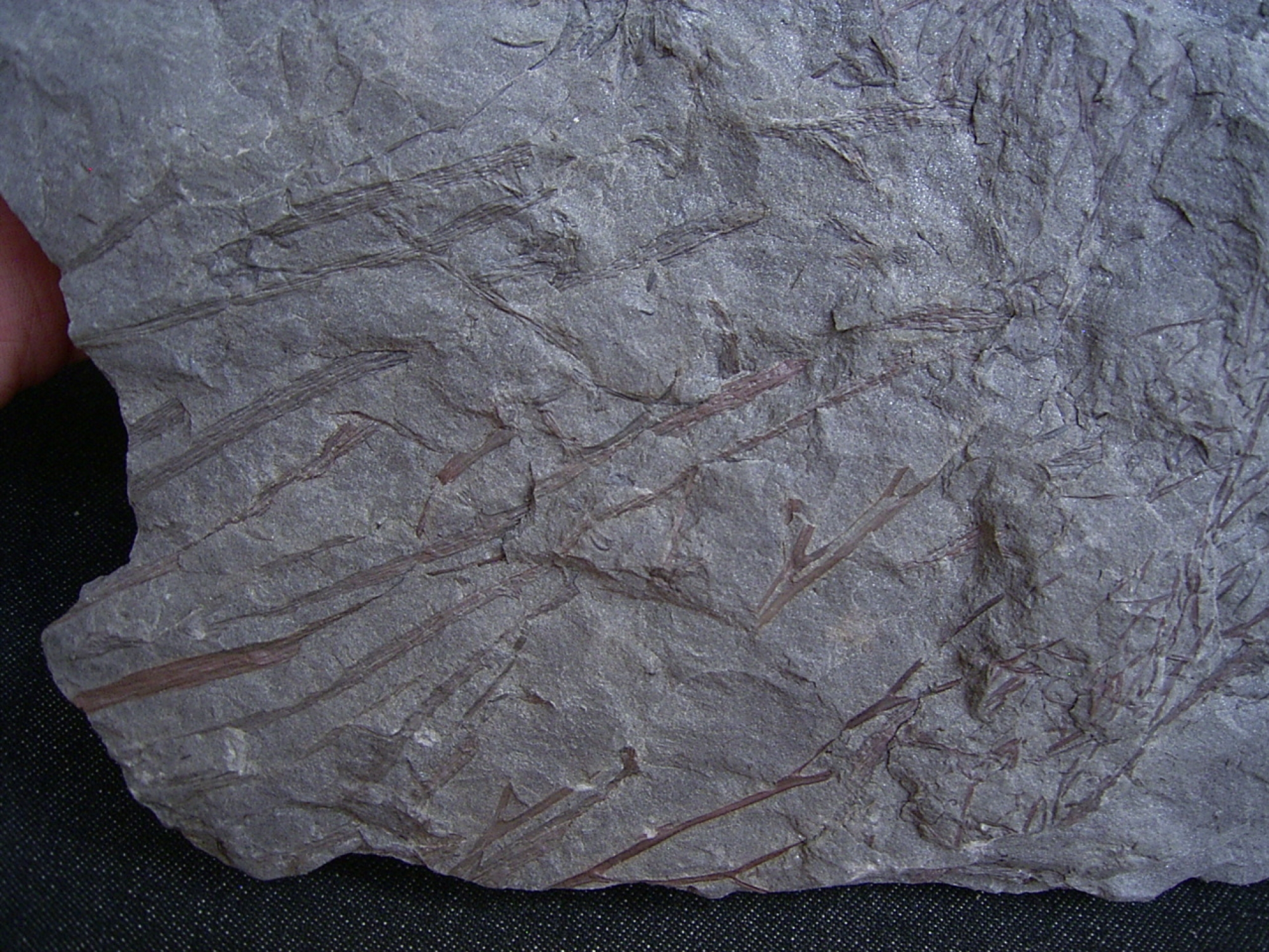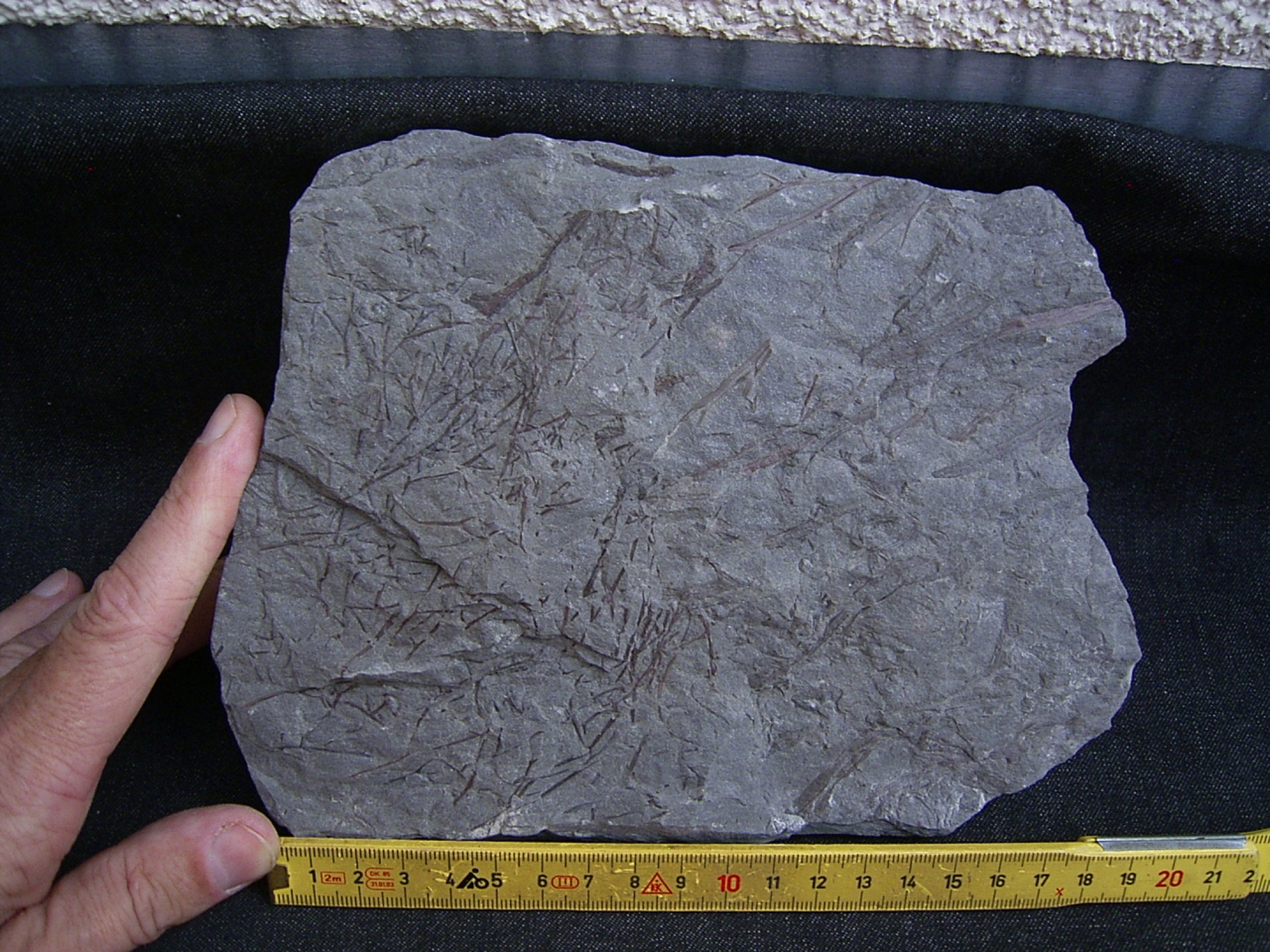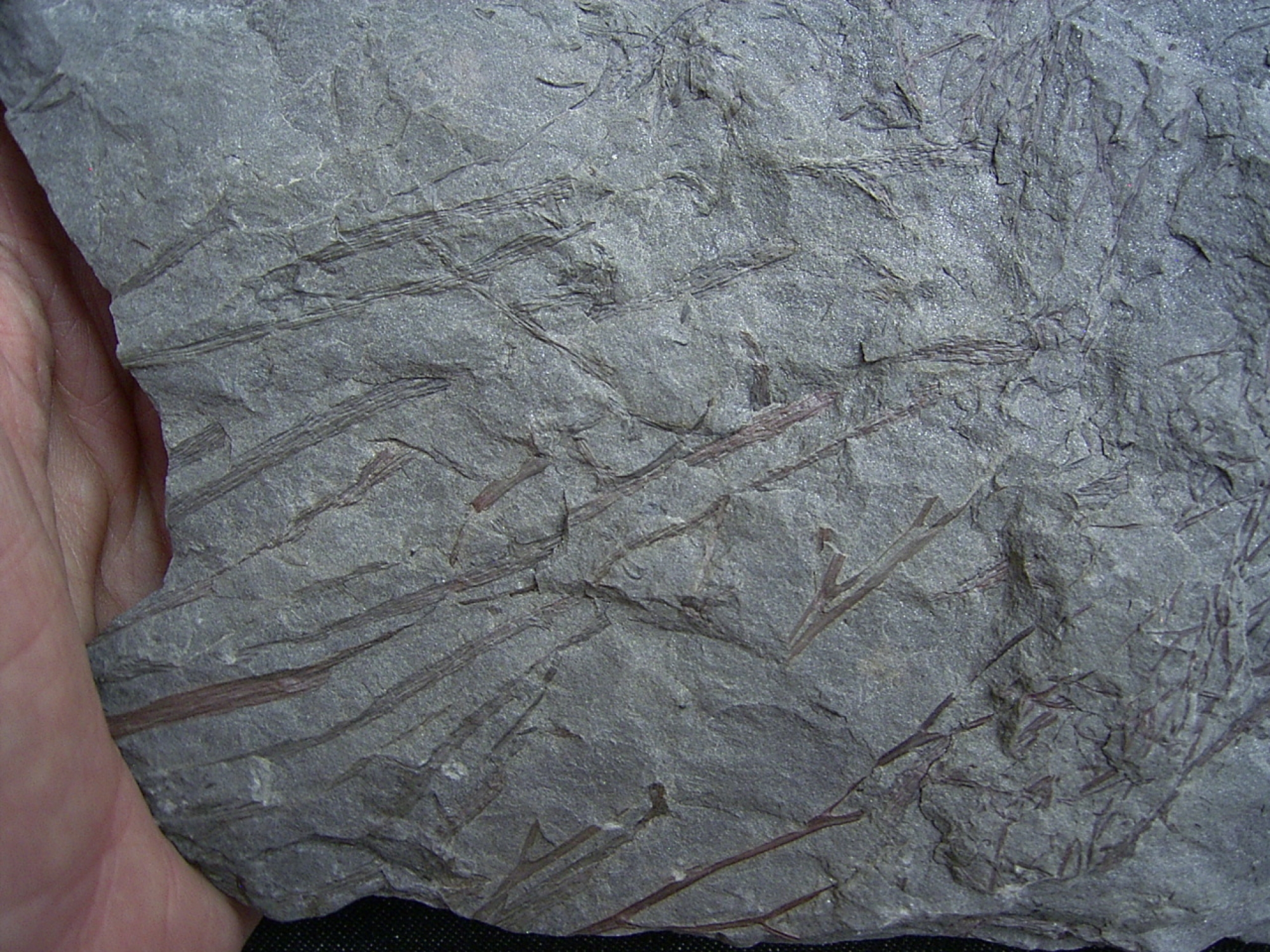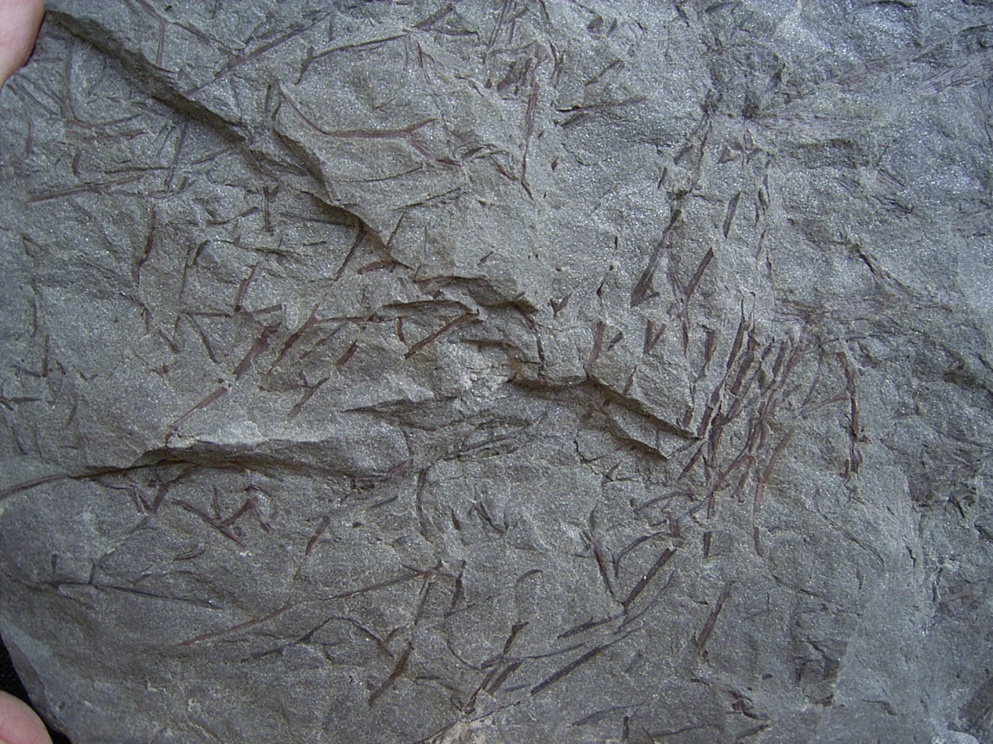 Dieser Stein enthaelt interessante Fossilien der fruehest bekannten Landpflanzen Psilophytonn.