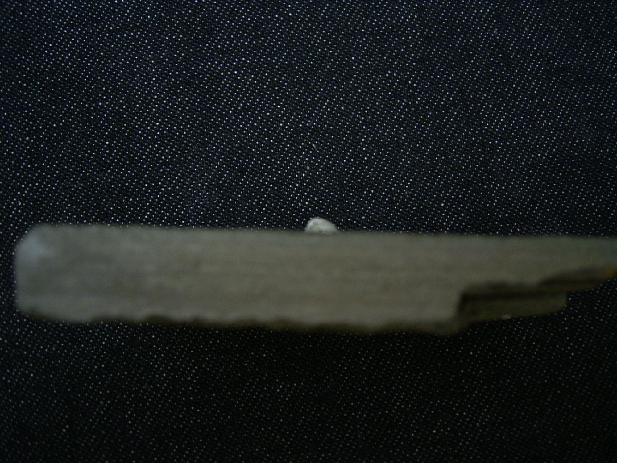 Hier handelt es sich um einen Zahn vom Hai Lebachacanthus pollichiae. Das Fossil stammt aus den Perm-zeitlichen Ablagerungen (Schwarzpelit Bank) von Breitenheim in der Pfalz.