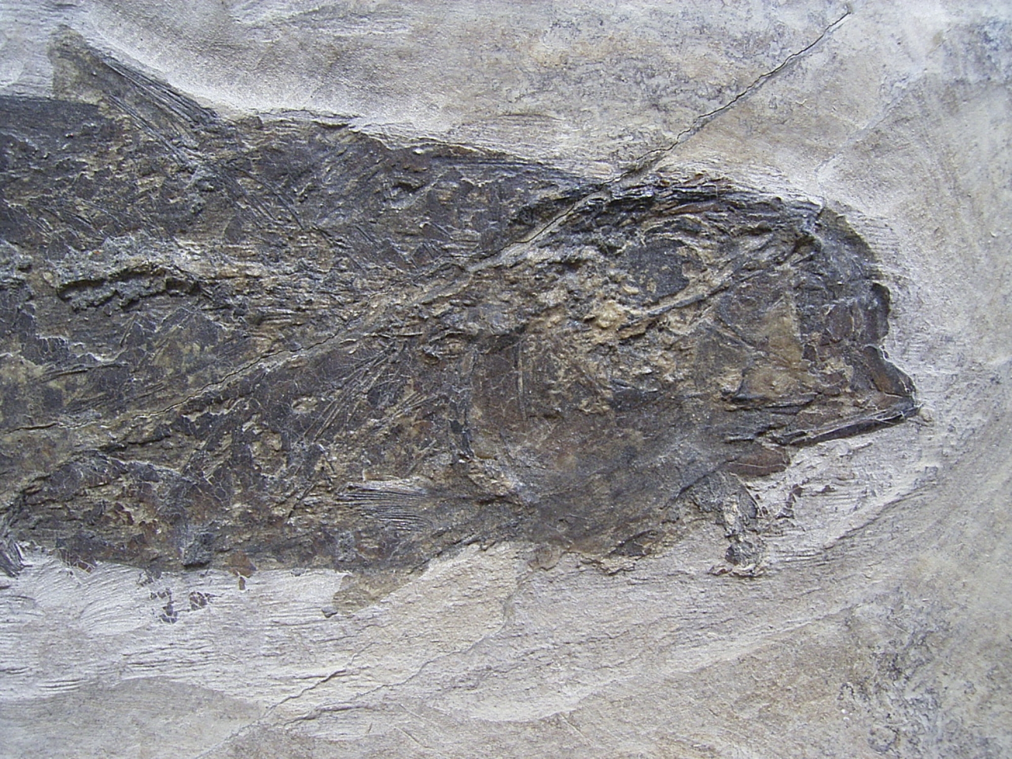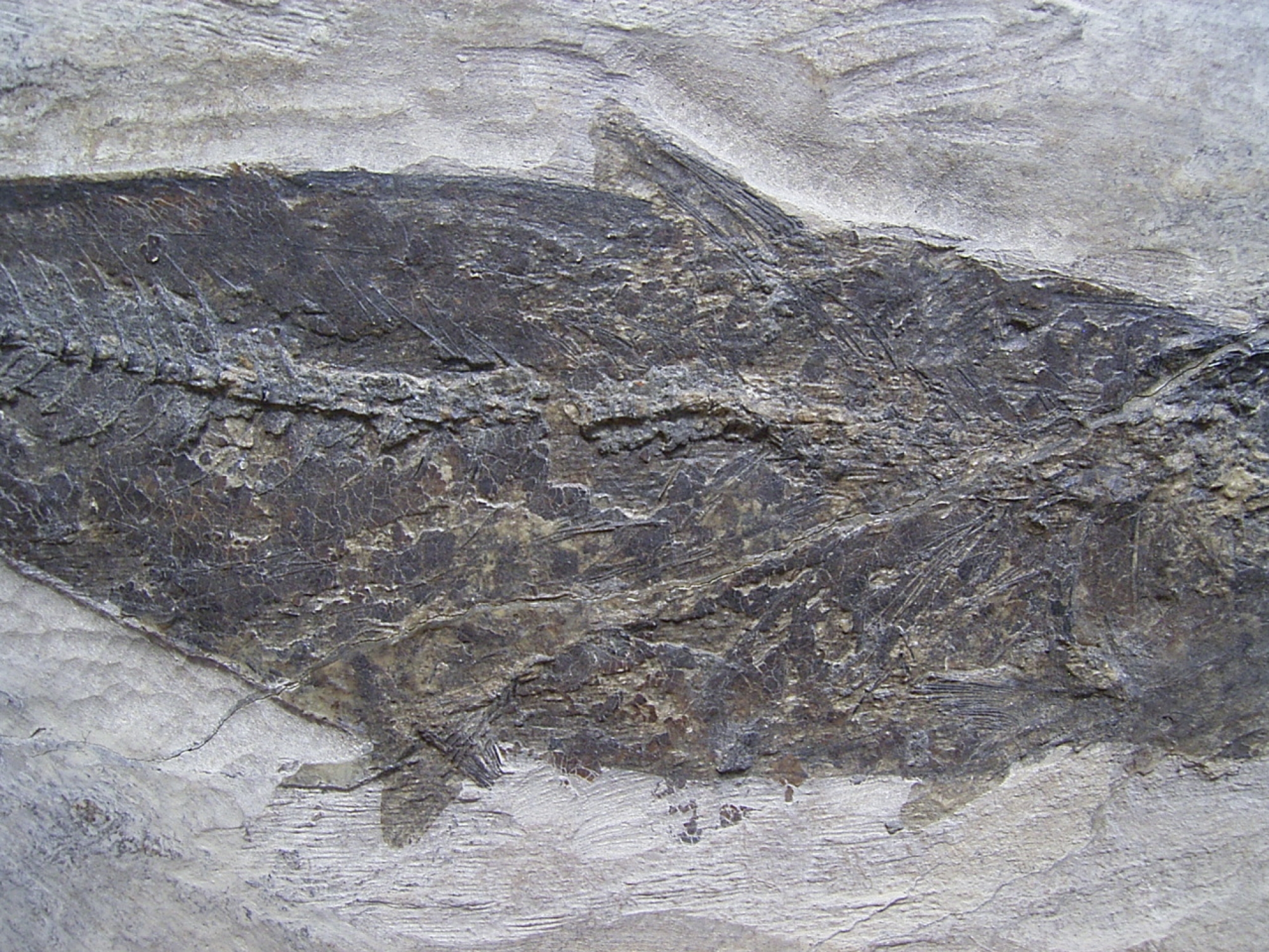 Dieses Fischfossil stammt aus dem Oligozaen (Rupelton) von Wiesloch-Frauenweiler. Das Alter dieses Stueckes beläuft sich auf etwa 32 Millionen Jahre.