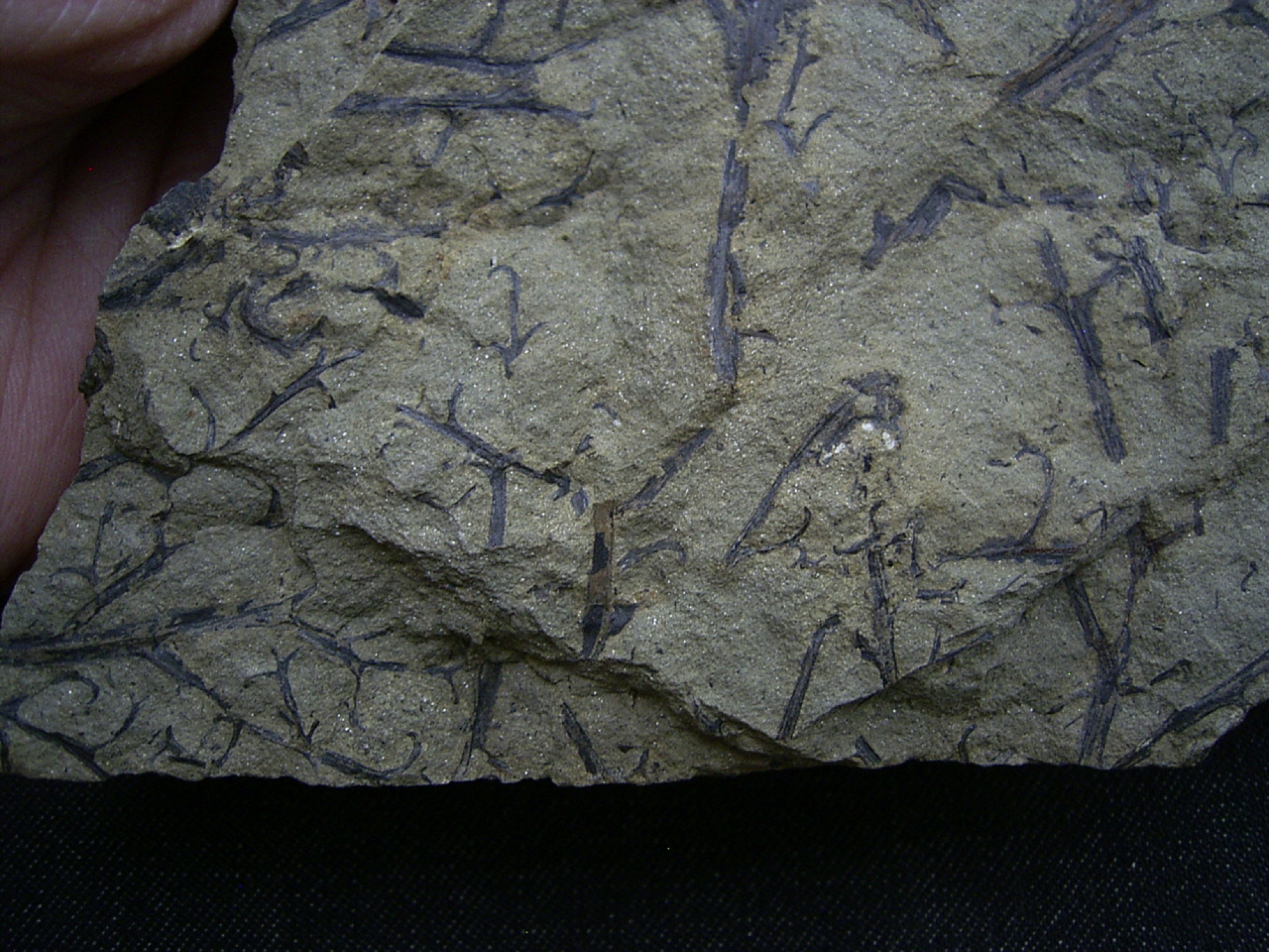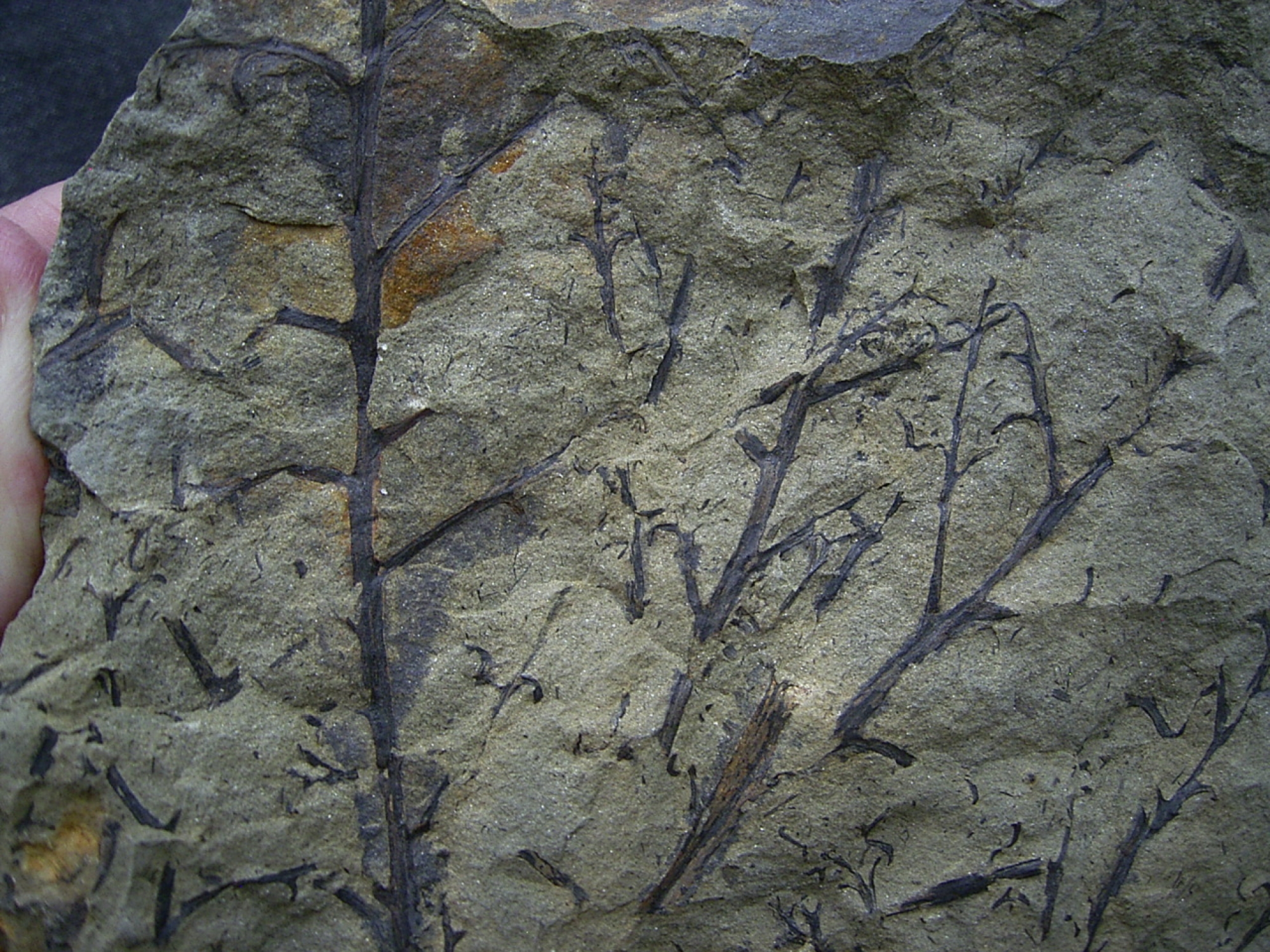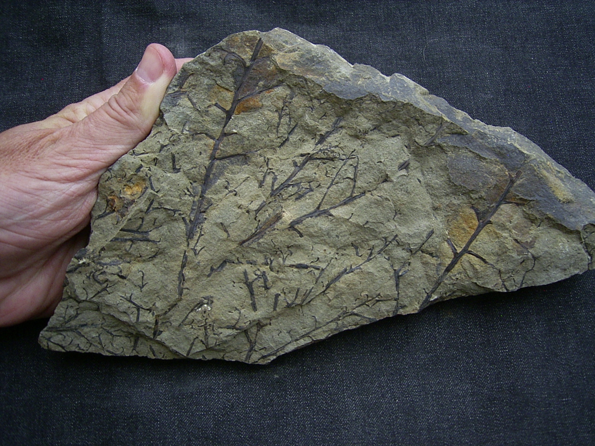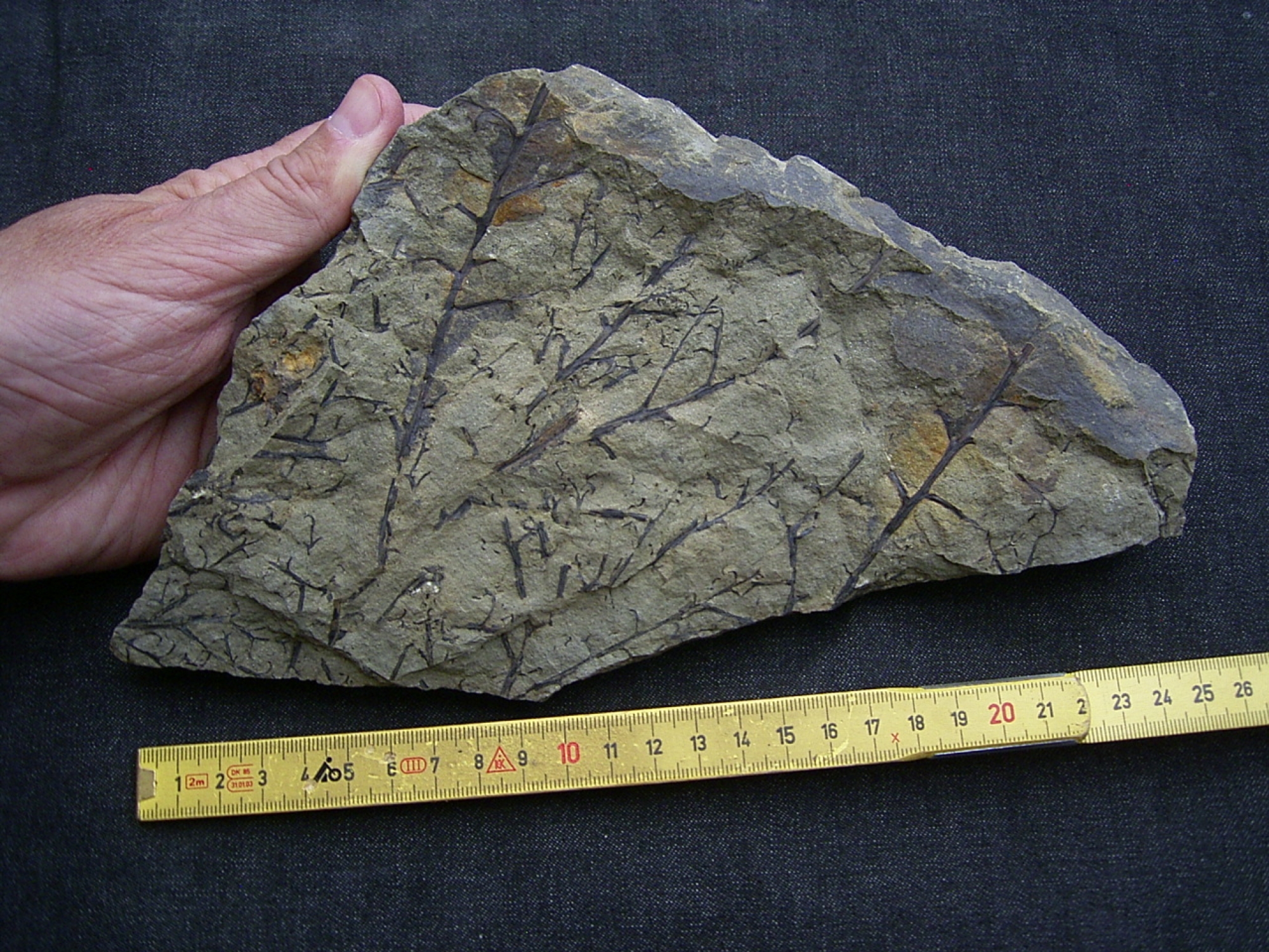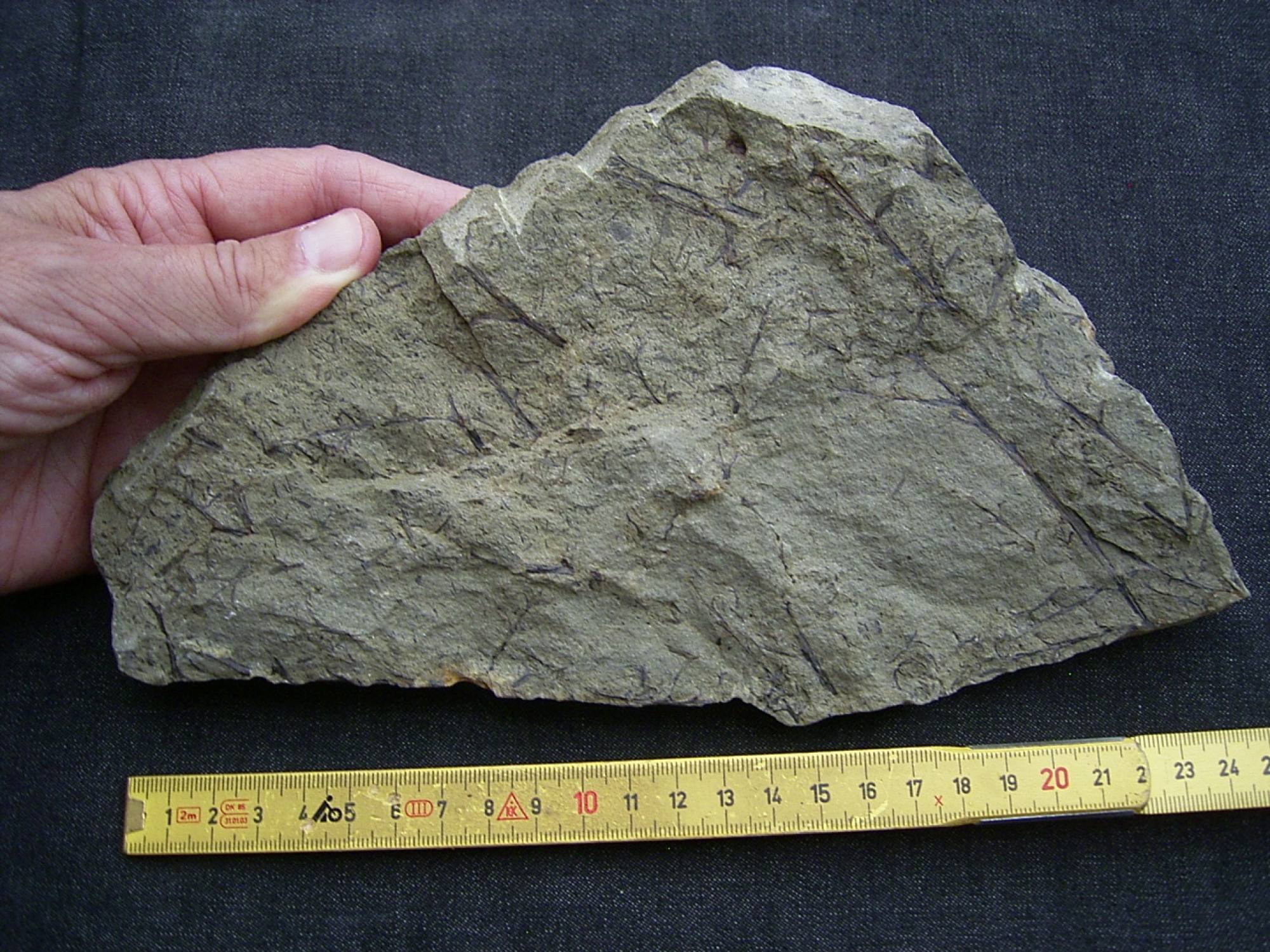Dieser Stein enthaelt sehr interessante Pflanzenfossilien Protopteridium aus dem Mtteldel-Devon (Grauwacke) des Bergischen Landes.