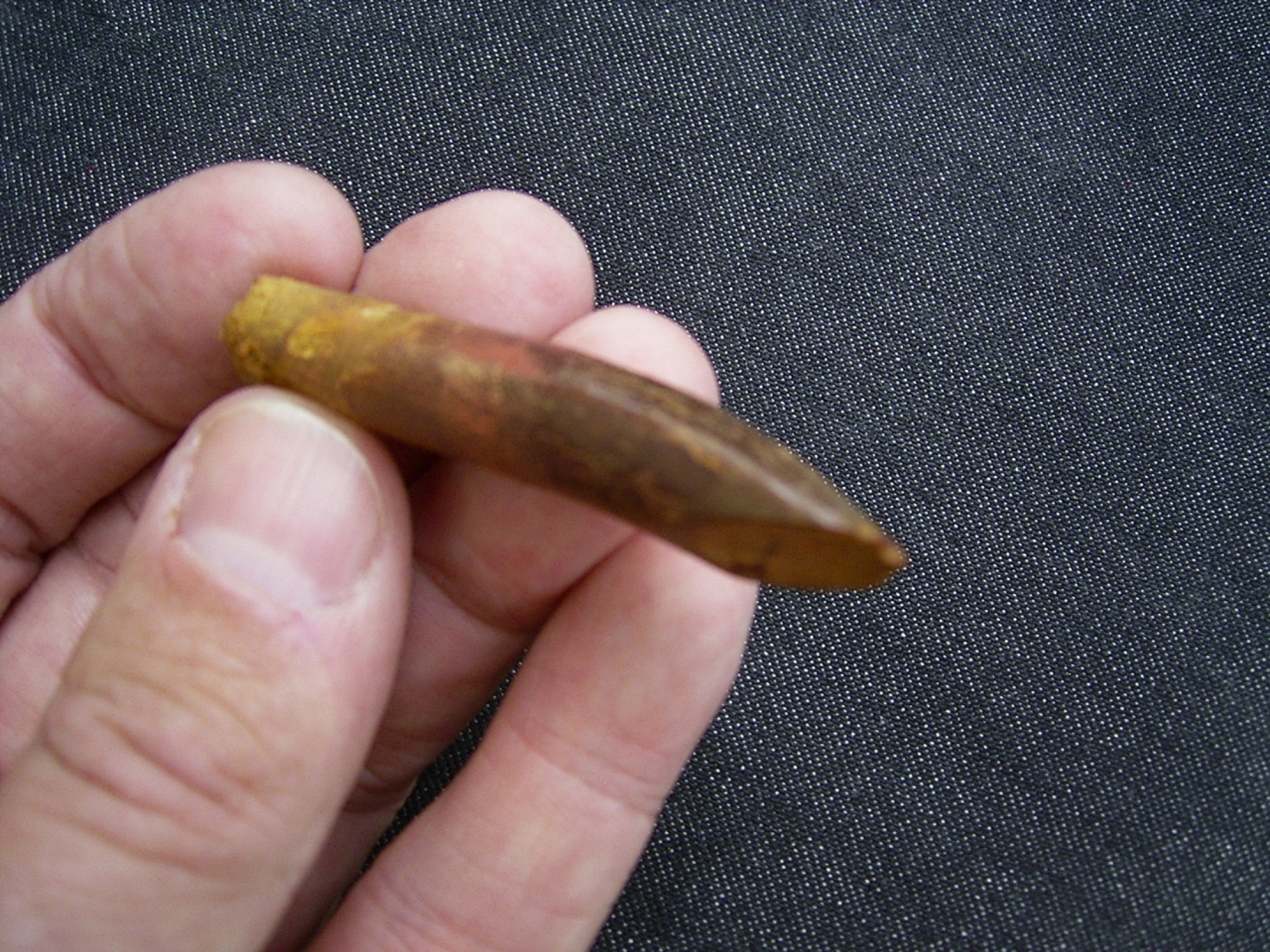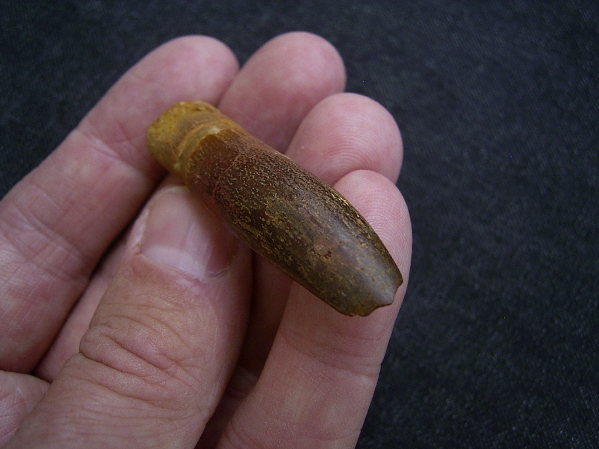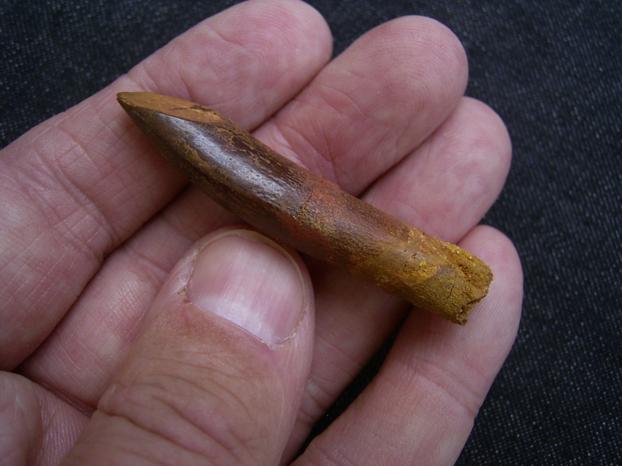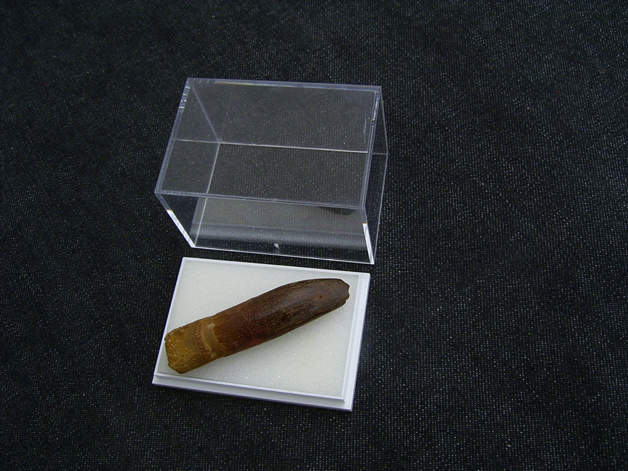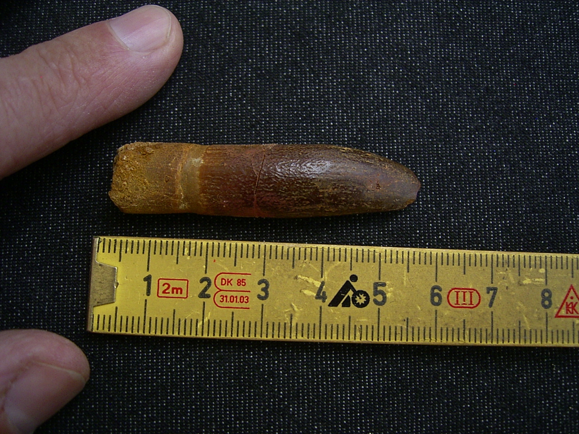 Der Zahn ist recht gross und von der Wurzel bis zur Spitze erhalten. Er misst etwa 5,5 cm.