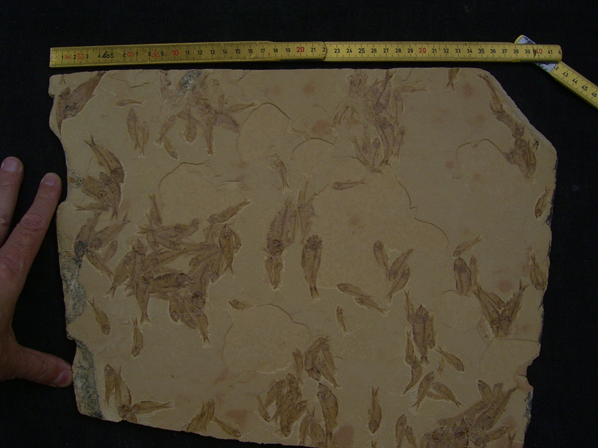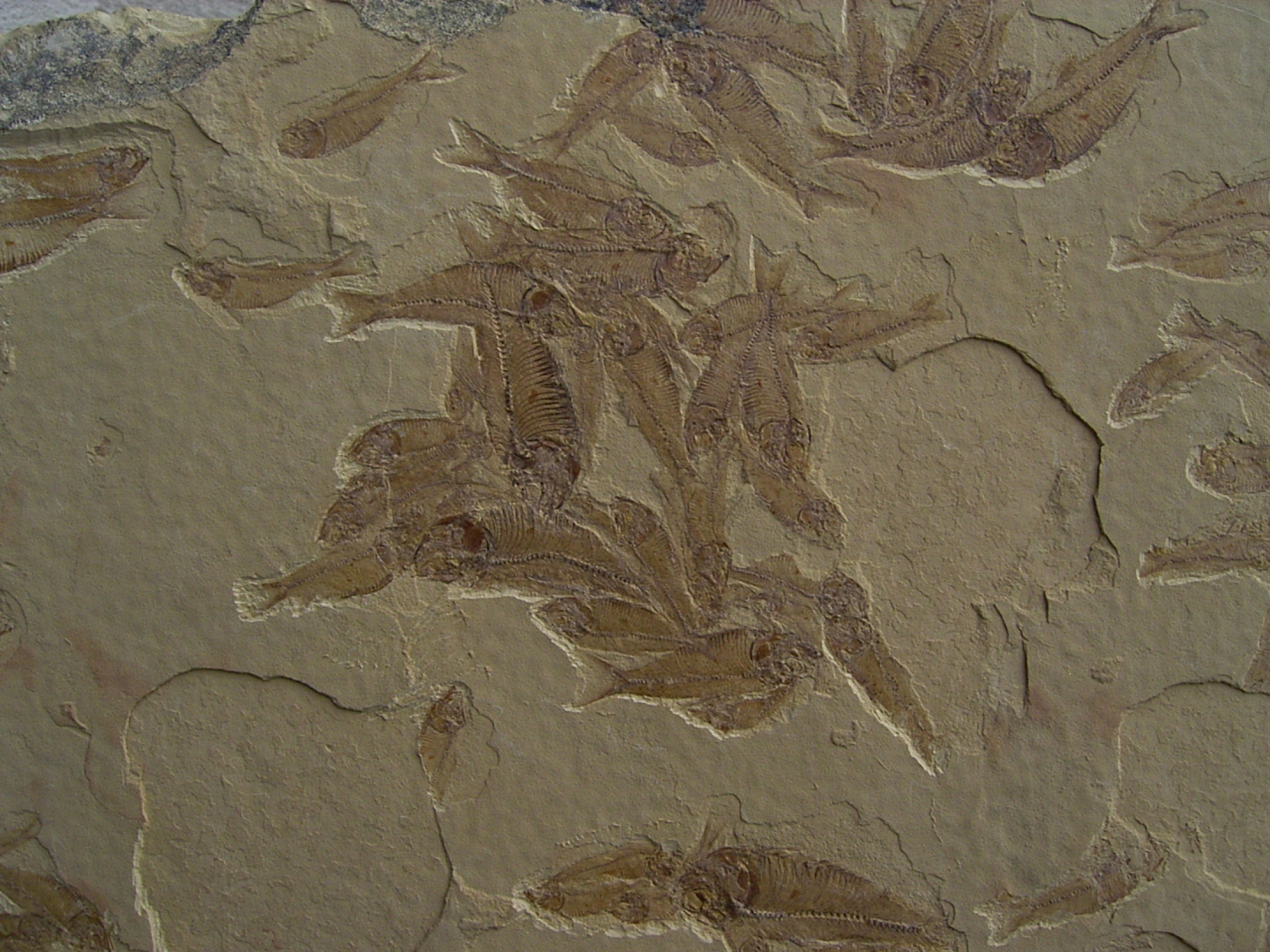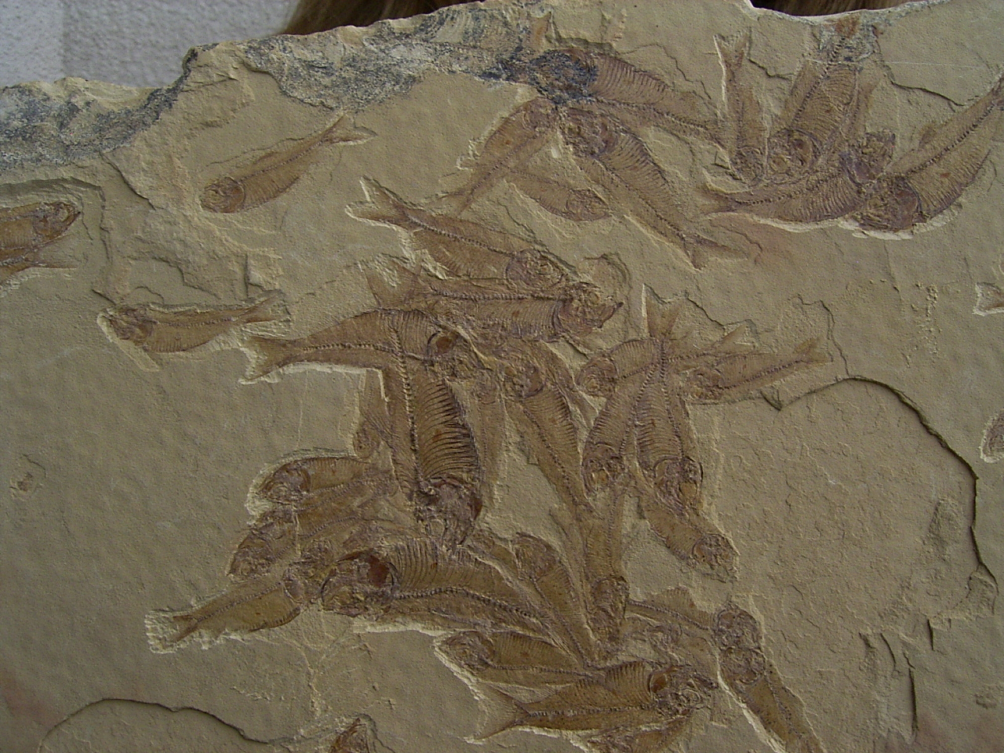 - Die Zeitkapsel: Ueber Jahrmillionen verfestigte sich der feine Kalkschlamm zu Schiefer und bewahrte die Fische in ihrer natuerlichen Schwarmformation – fast so, als waeren sie gestern erst versteinert.