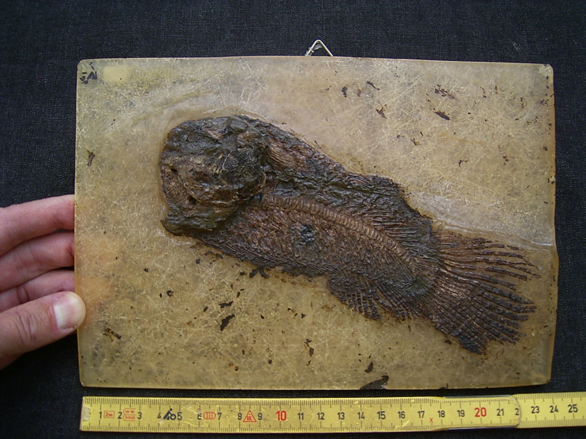- Zustand: Originalfossil auf stabiler Kunstharz-Matrix mit rueckseitig angebrachtem Aufhaenger (Sie koennen das Exponat direkt an eine Wand haengen)