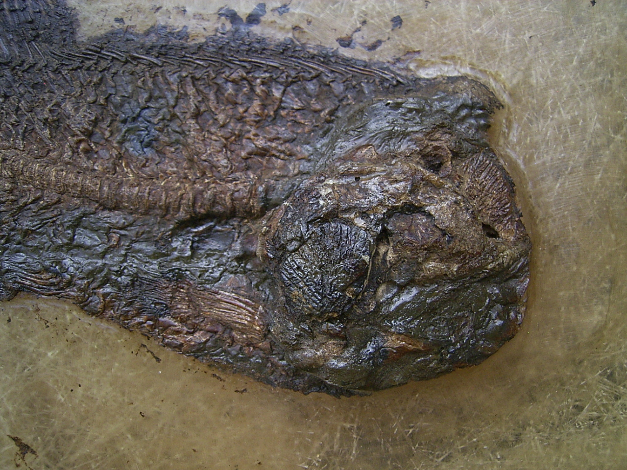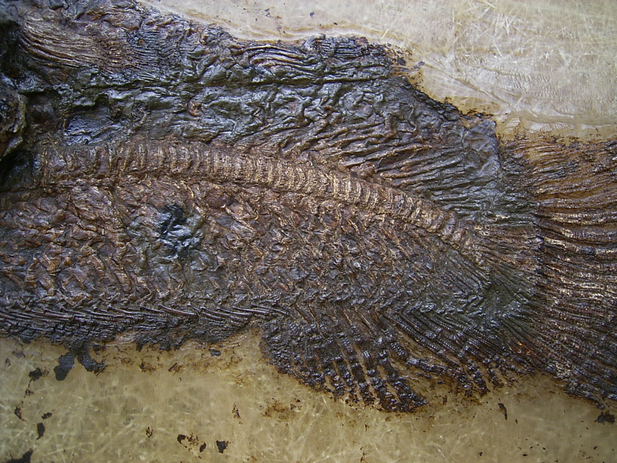 - Wissenschaftliche Bedeutung: Als naher Verwandter des heutigen Kahlhechts (Amia calva) ist dieser „lebende Fossil“-Verwandte ein Schluesselstueck fuer das Verstaendnis der Evolution der Knochenfische.