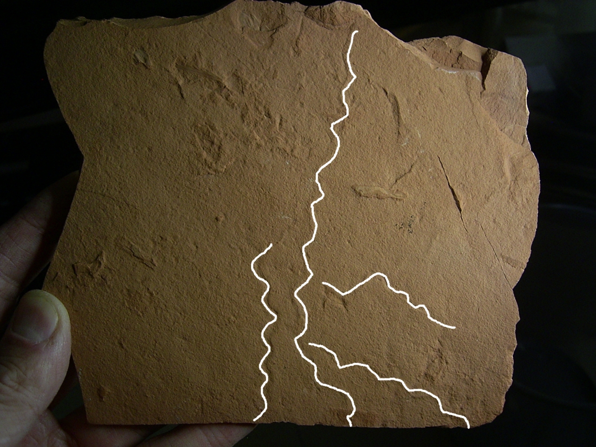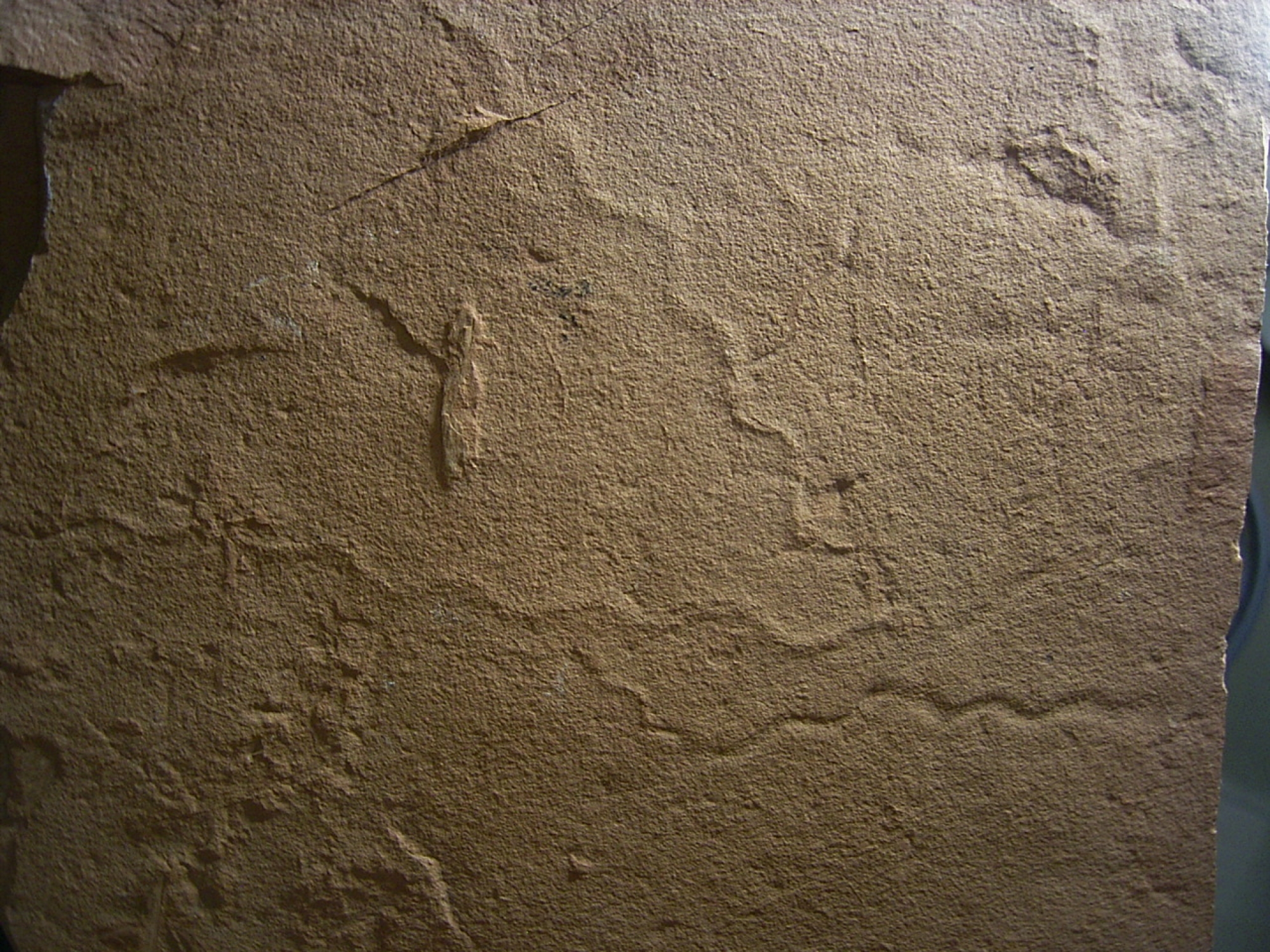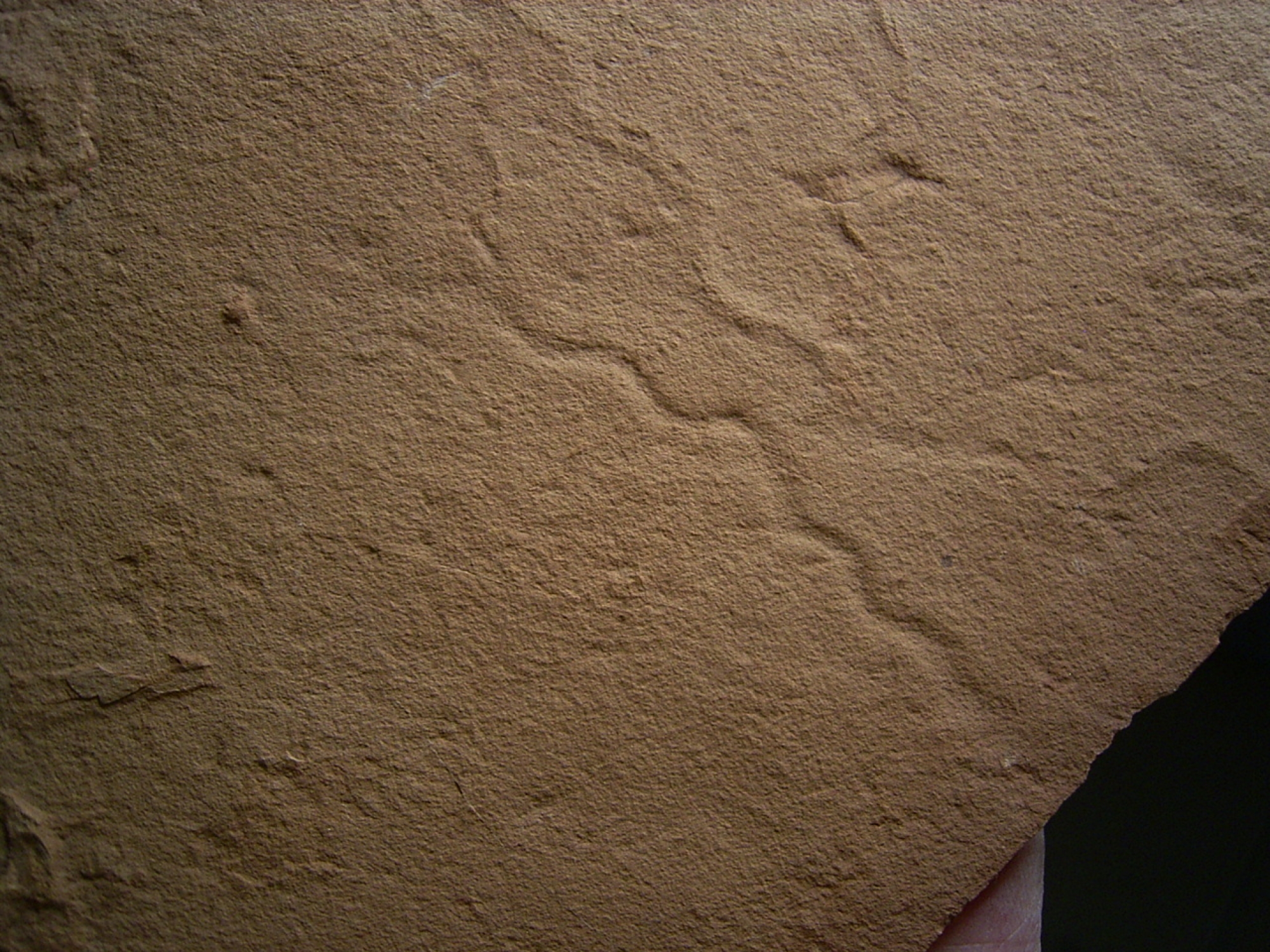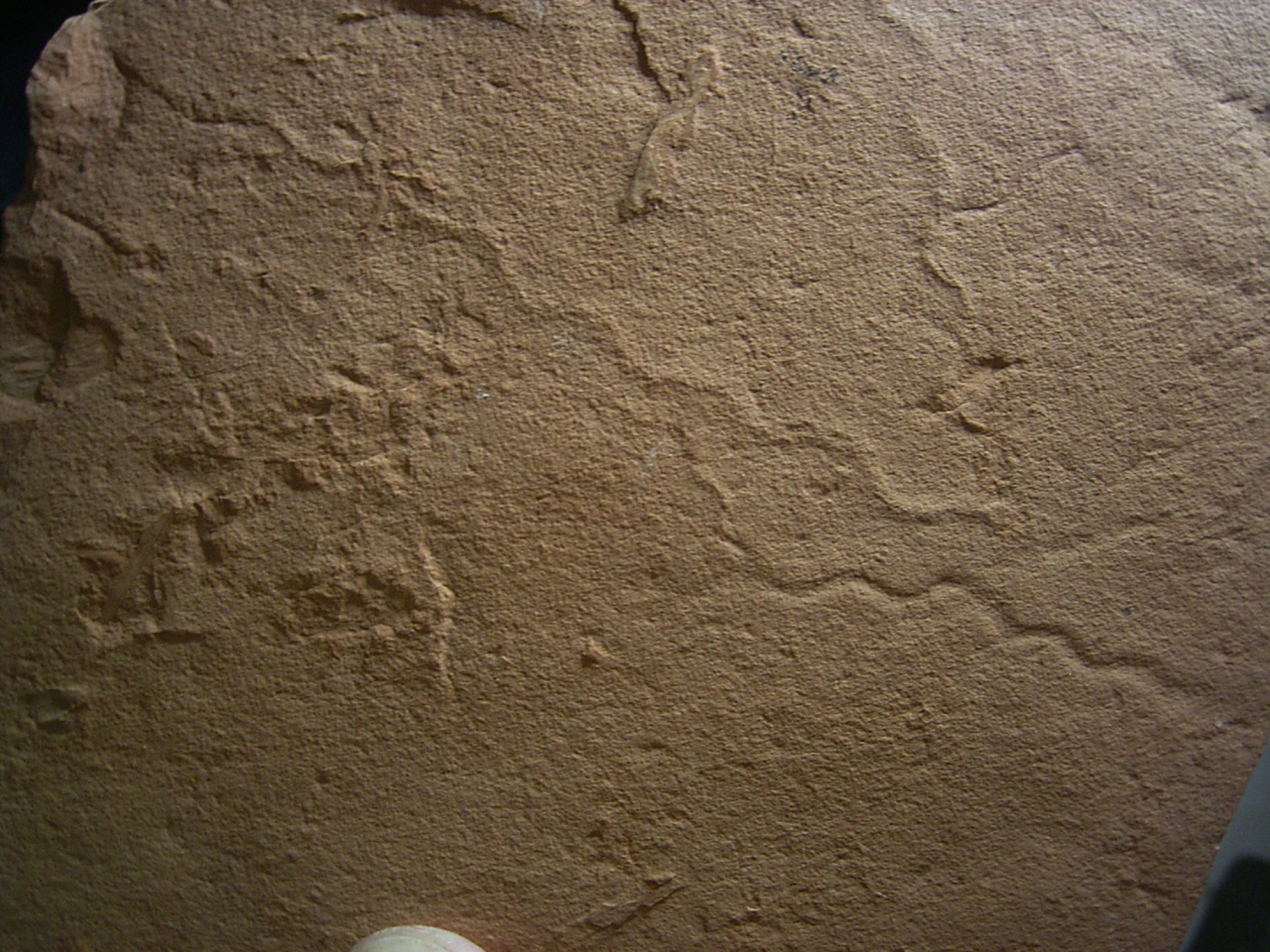 Hier handelt es sich um eine interessante Platte mit mehrere Spurenfossilien (Ichnofossilien) von fruehzeitlichen Wuermern.