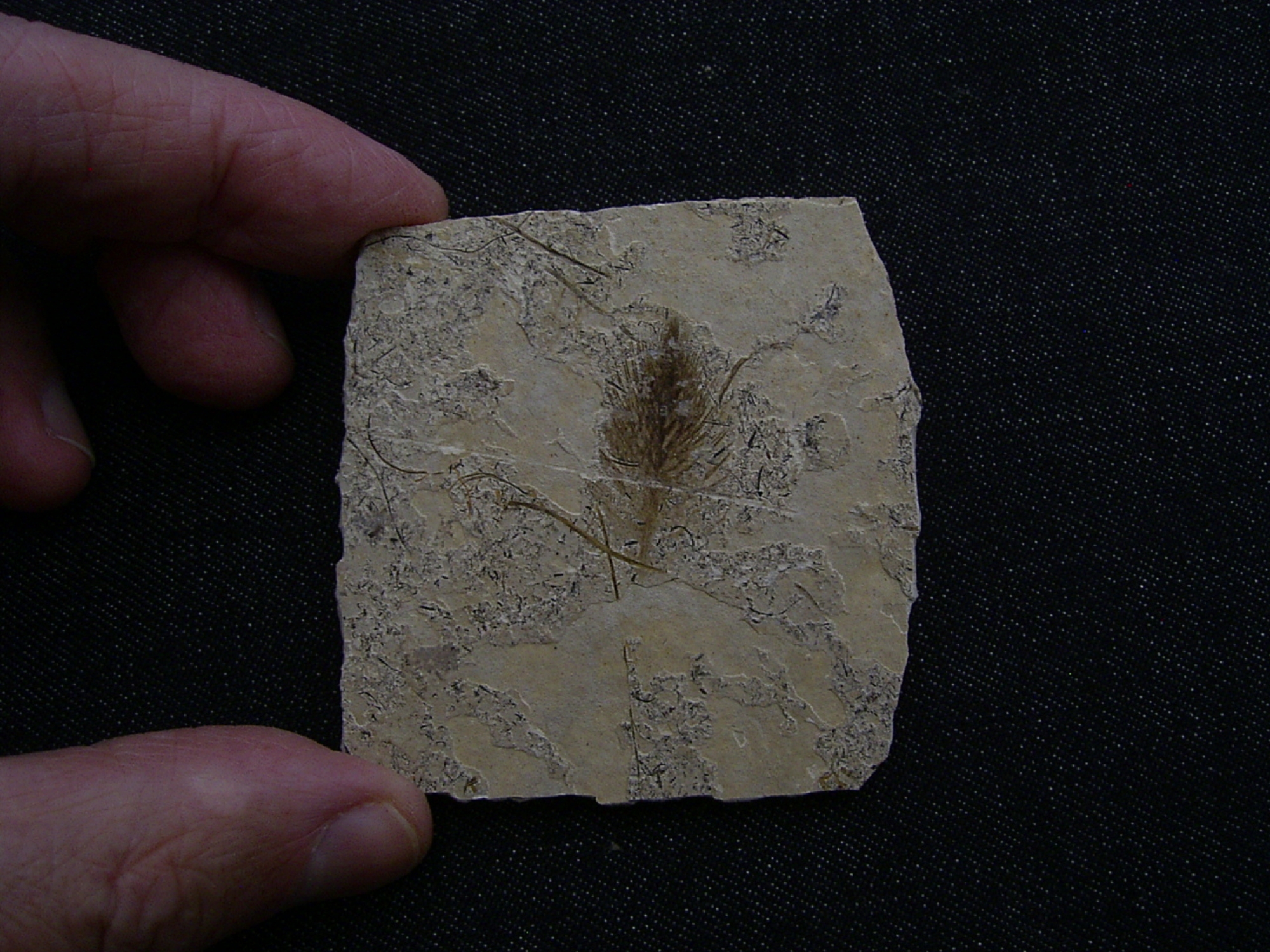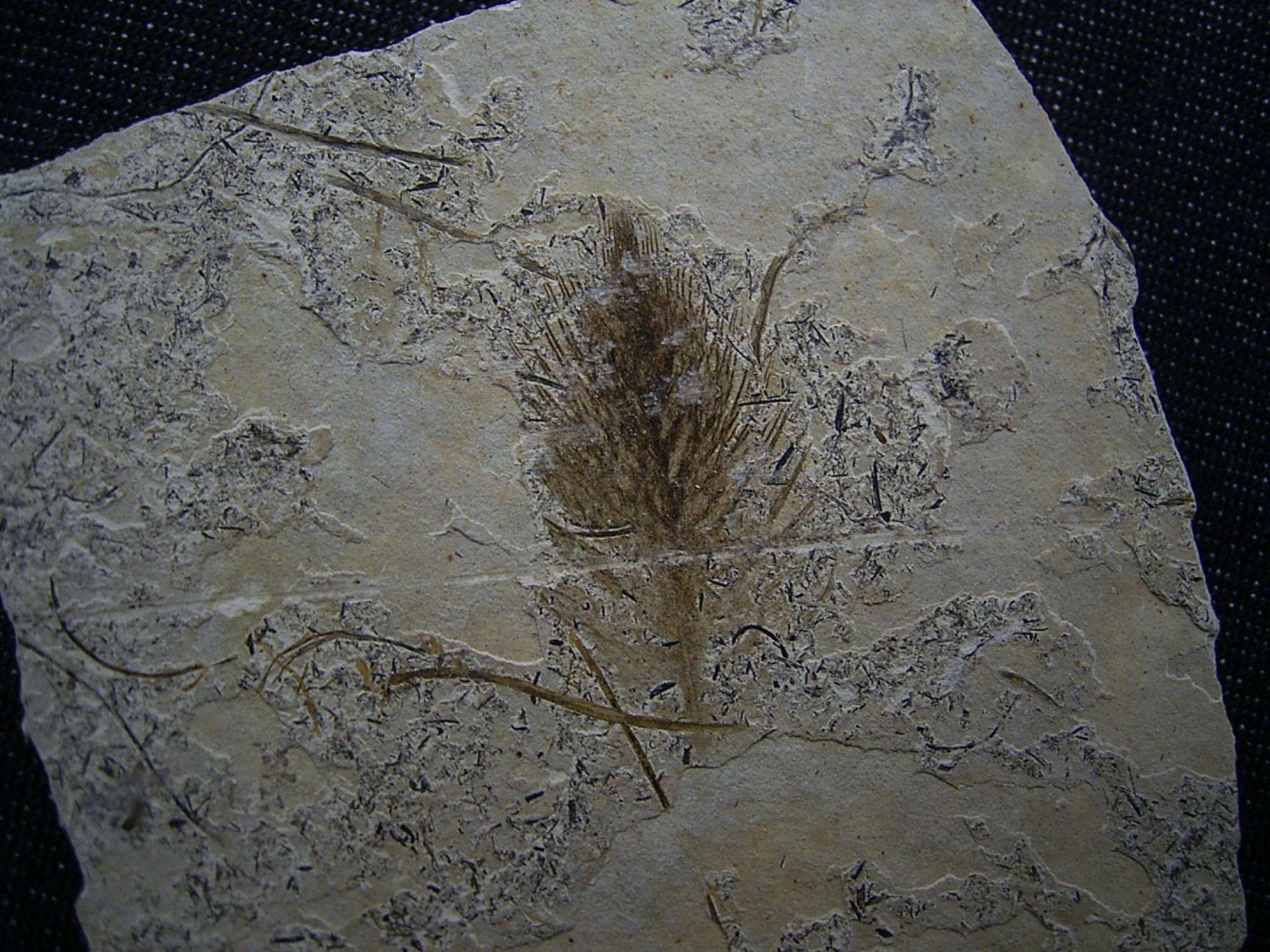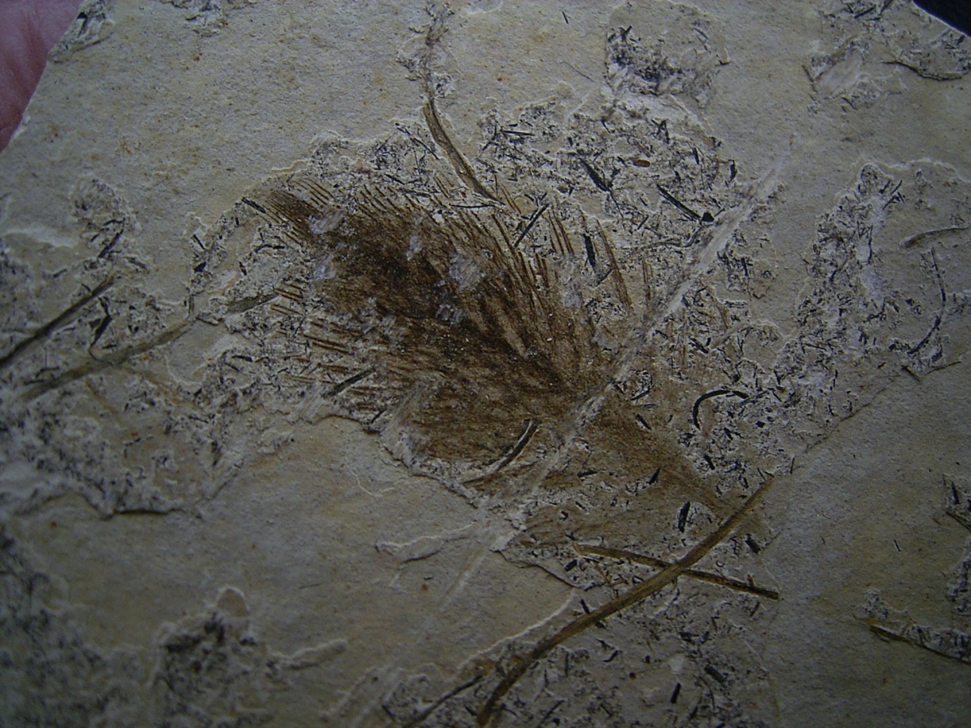 Diese fossile Vogelfeder stammt aus dem Oligozaen von Cereste in Frankreich.