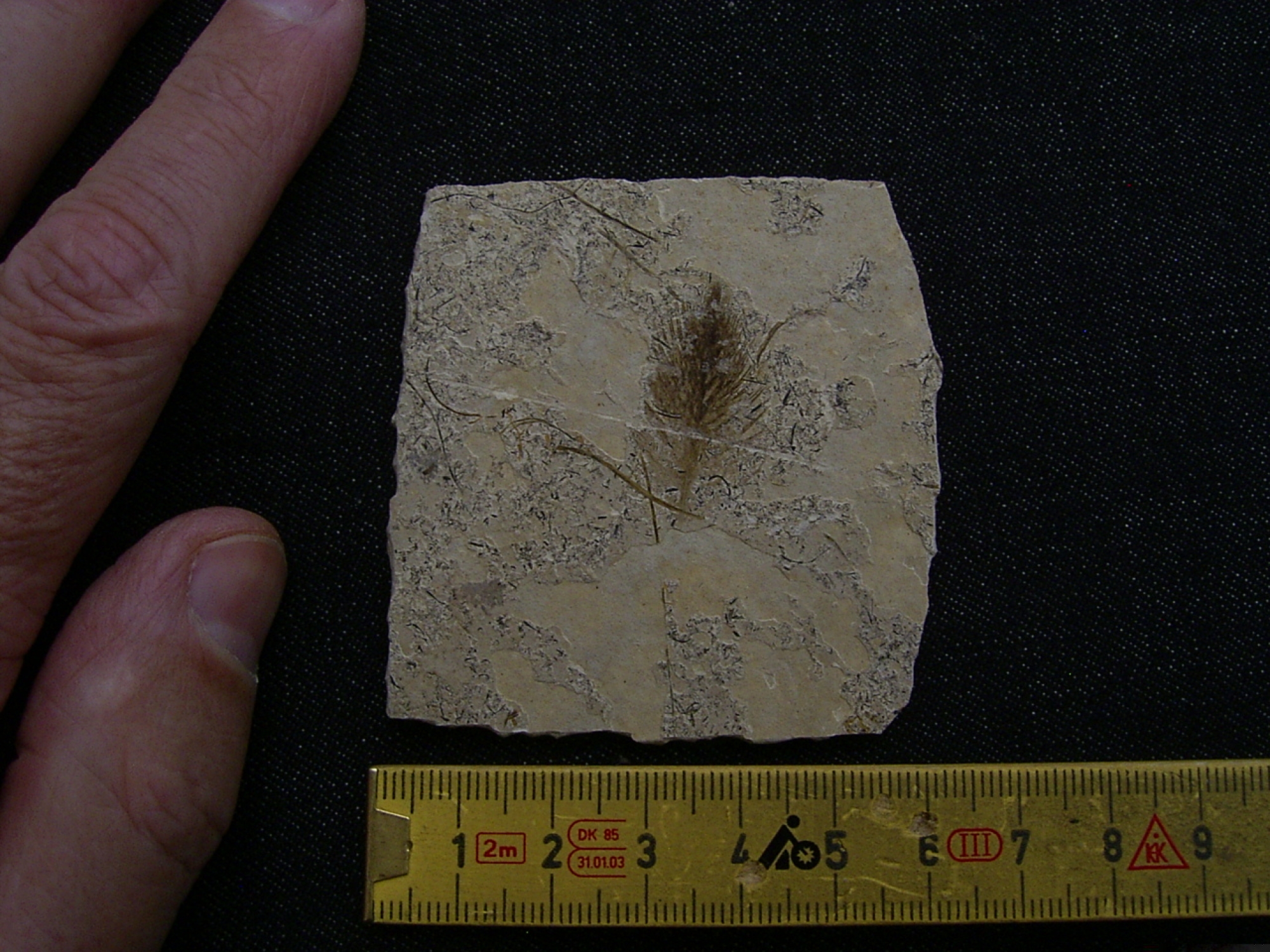 Die Feder misst etwa 3 cm- Der Stein ist ungebrochen, er misst etwa 6 x 6 x 0,5 cm.