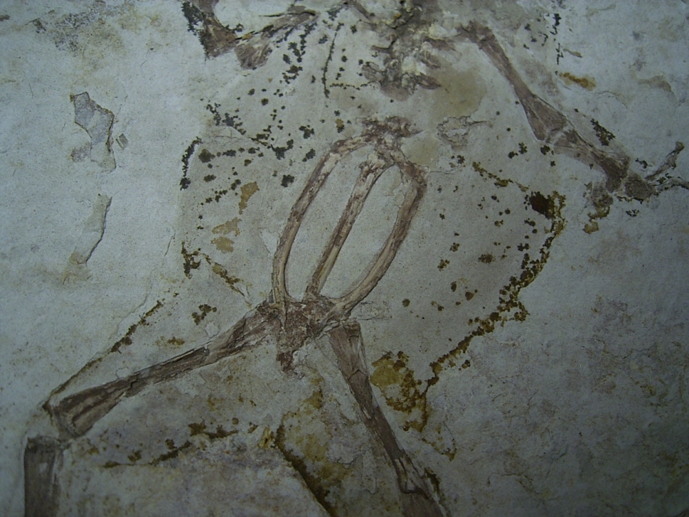 Dieses Frosch-Fossil stammt aus der Kreide (Jehol Gruppe) der Provinz Liaoning in China.