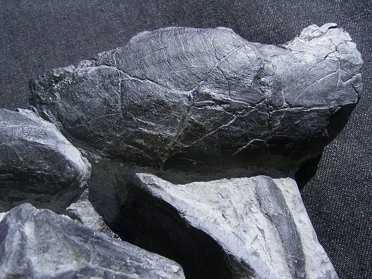 Interessant sind die typischen Oberflächenstrukturen der Fossilien.