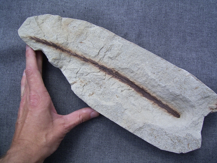 Das Fossil misst etwa 28 cm. Die ungebrochene Originalmatrix misst etwa 34 x 12 x 3 cm.