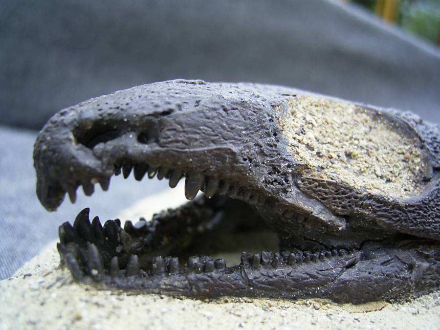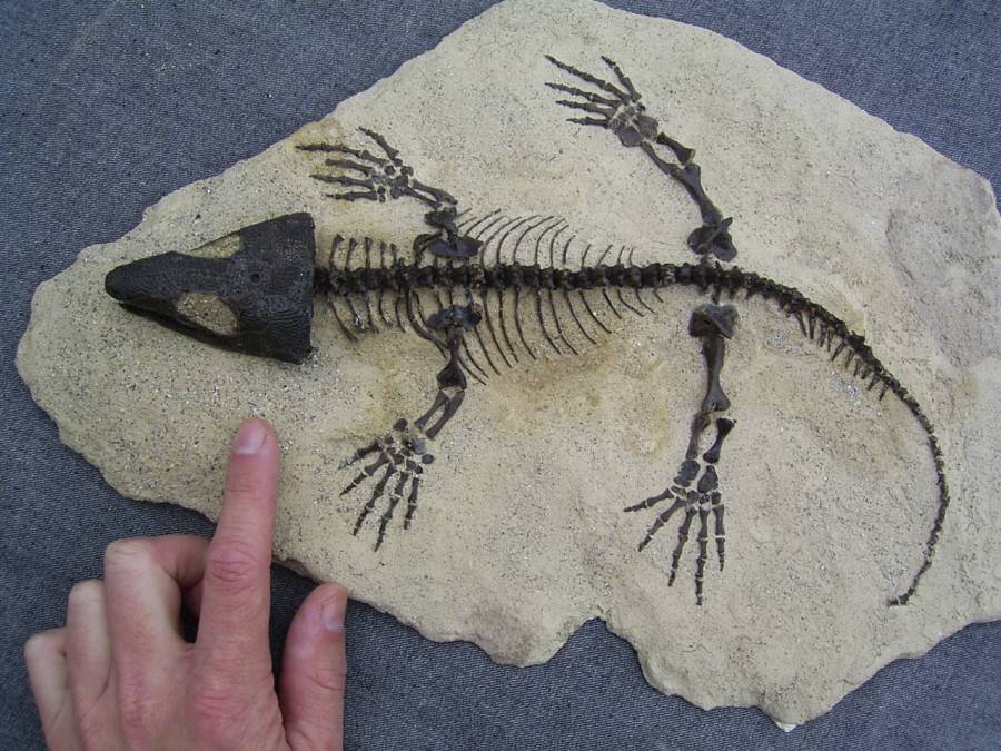 Dies ist ein Skelett von einem kompletten Reptil auf Matrix. Der Name dieser Spezies lautet Captorhinus Agutti. Dies ist eines der ersten Reptilien die auf der Welt gelebt haben.