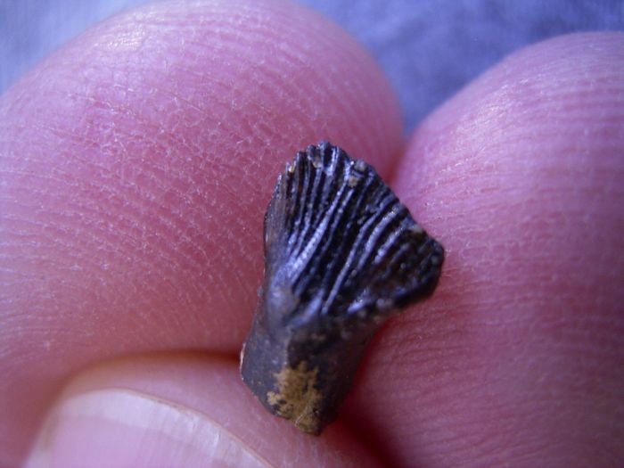 Dieser Zahn von Ankylosaurus misst etwa 1 cm. Er ist ungebrochen und perfekt erhalten. Ein Museumsstück!