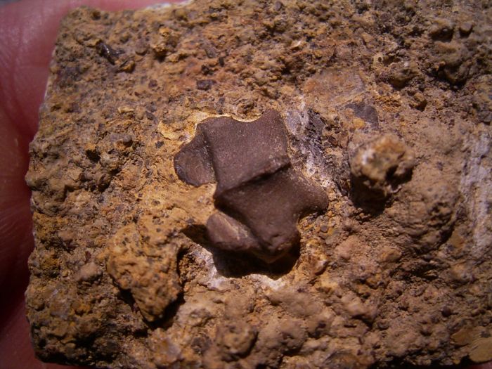 Dieser Wirbel von Pachypleurosaurus stammt aus dem oberen Muschelkalk (mo3) von Würzburg.