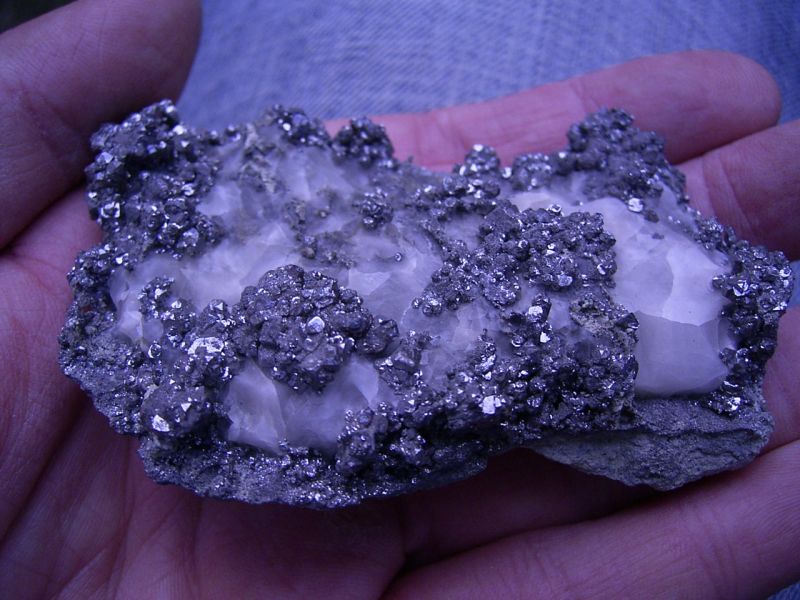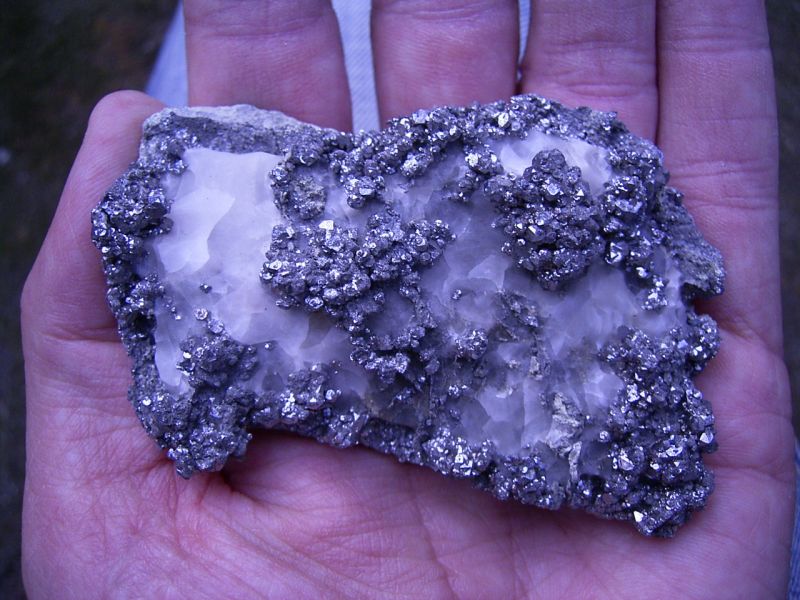 Dieses Handstück mit schönen Skutterudit Kristallen (Speiskobalt) stammt aus Mackenheim im Odenwald.