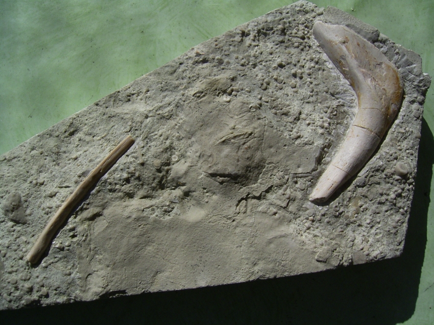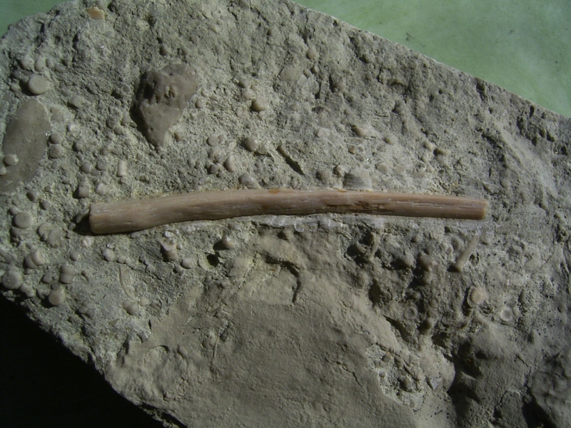 Hier handelt es sich um zwei Knochen des Sauriers Nothosaurus sp. aus dem unteren Muschalkalk (mittlere Trias) von Gogolin, Polen.